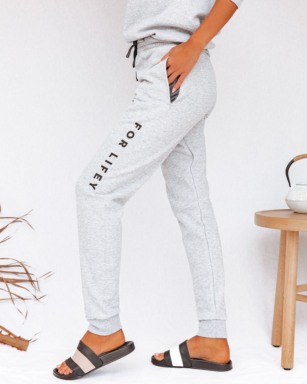 //OSHNOW// This adorable sweatsuit makes a great gift for a bride to be! Our A Wifey For Lifey Cotton Blend Pocketed Joggers have a black front graphic that reads “For Lifey.ââ‚?Pair this piece with the matching joggers and slides. Styled with theMosaic Coin Necklace. Kenzie Backpack. A Wifey For Lifey Cotton Blend Sweatshirt. and Sporty Slide Sandal.