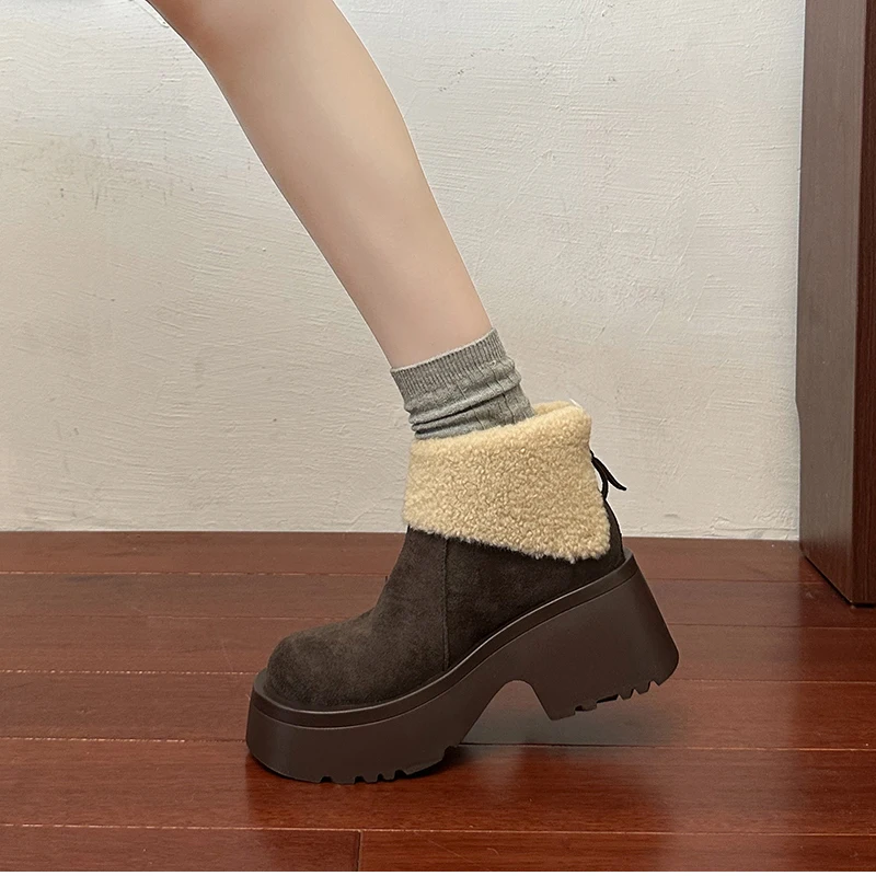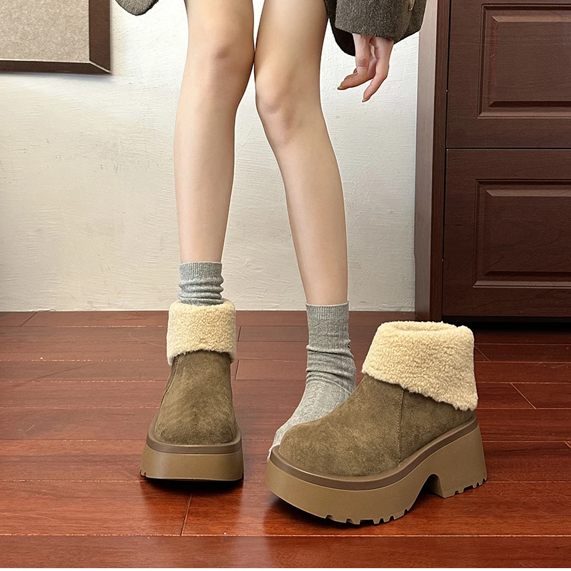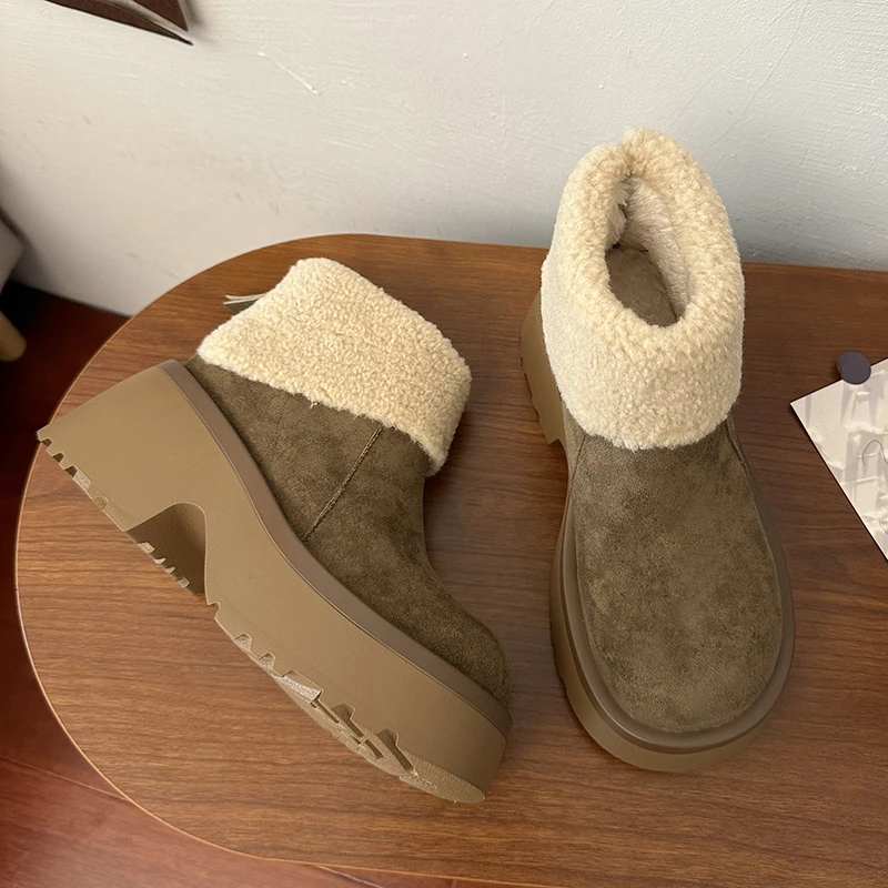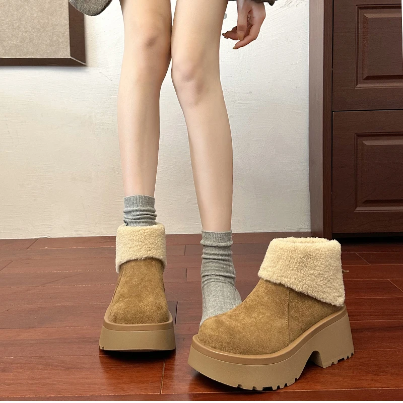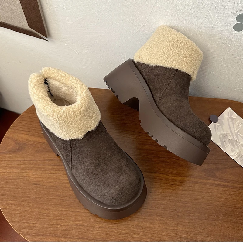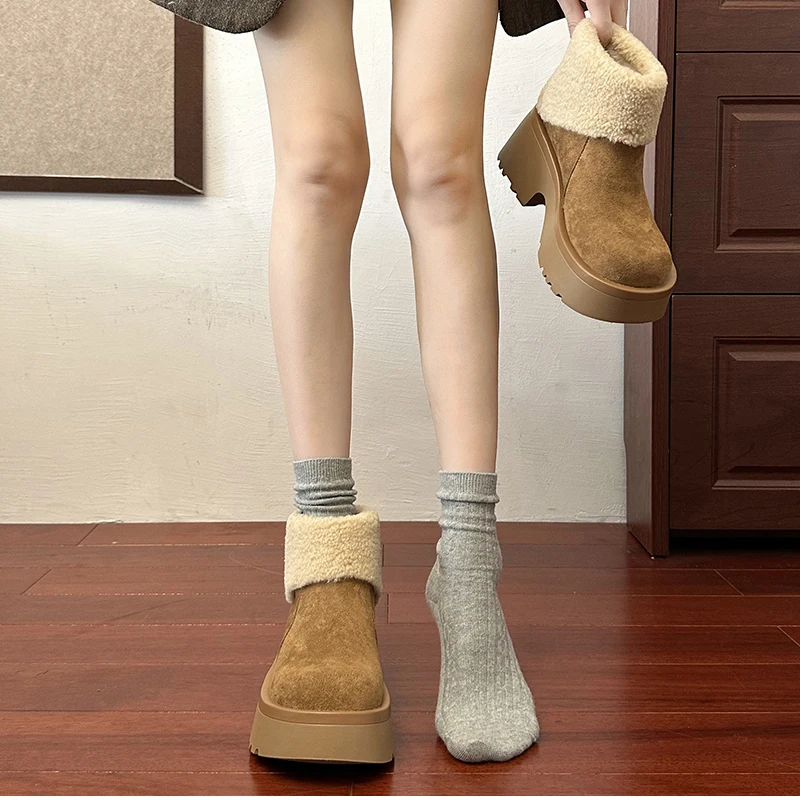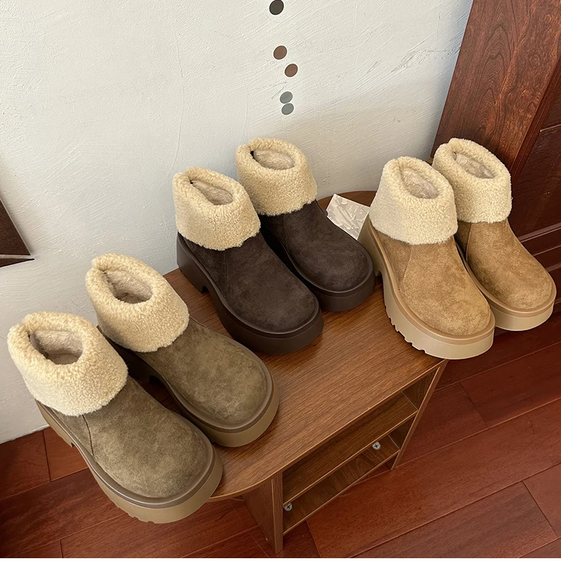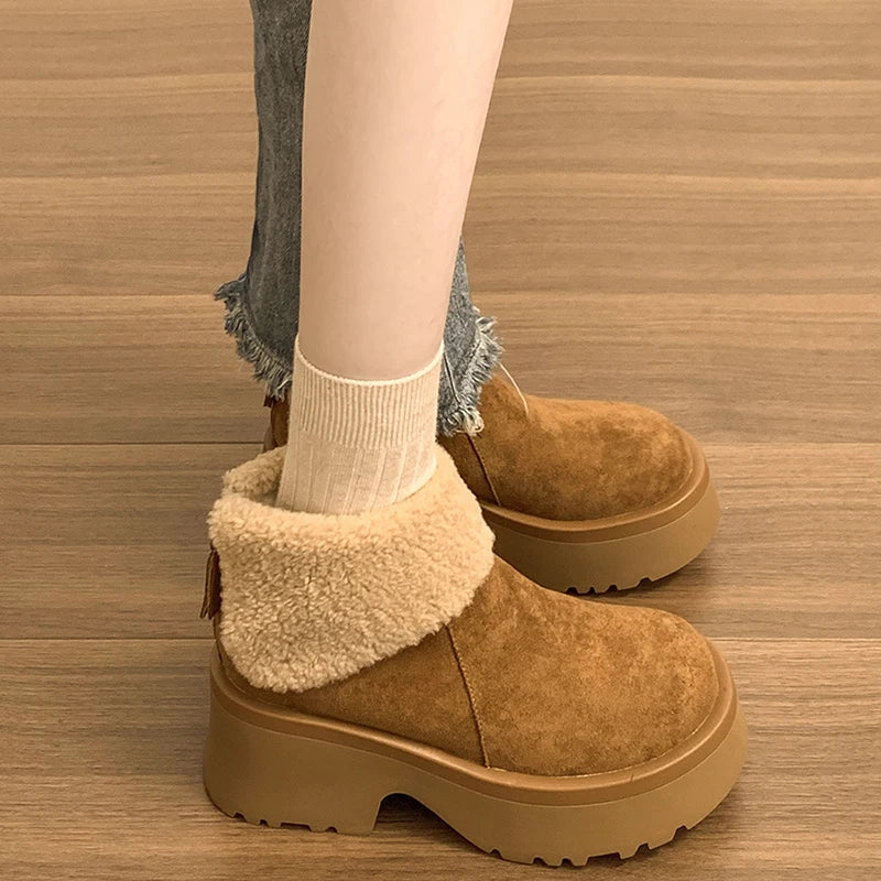 IFOMT - Winter Warm Plush Women Snow Boots Fashion Short Booties Comfort Thick Heel Cotton Shoes