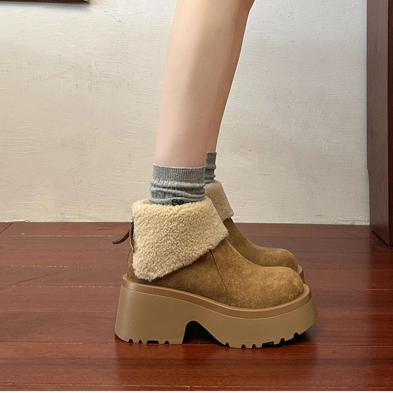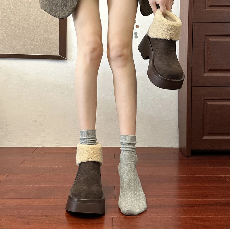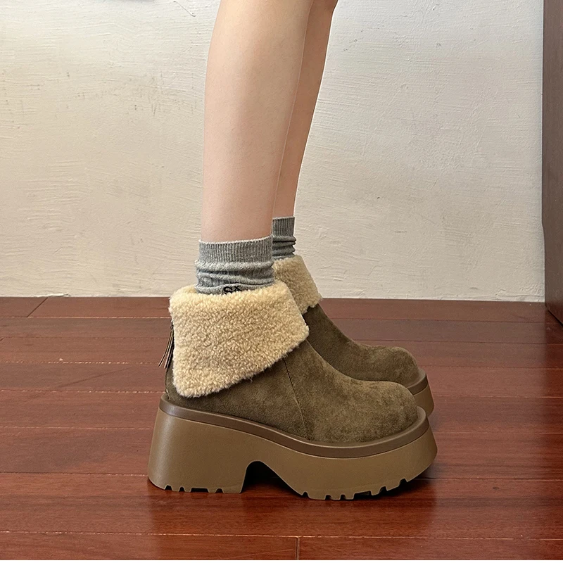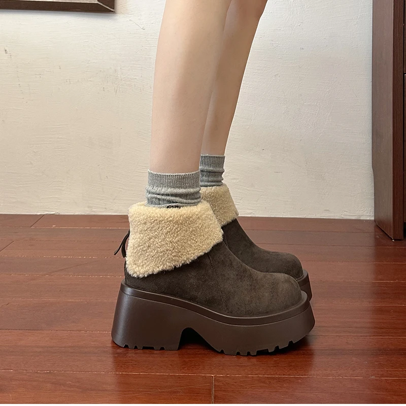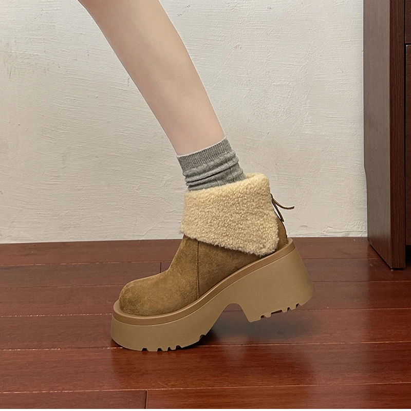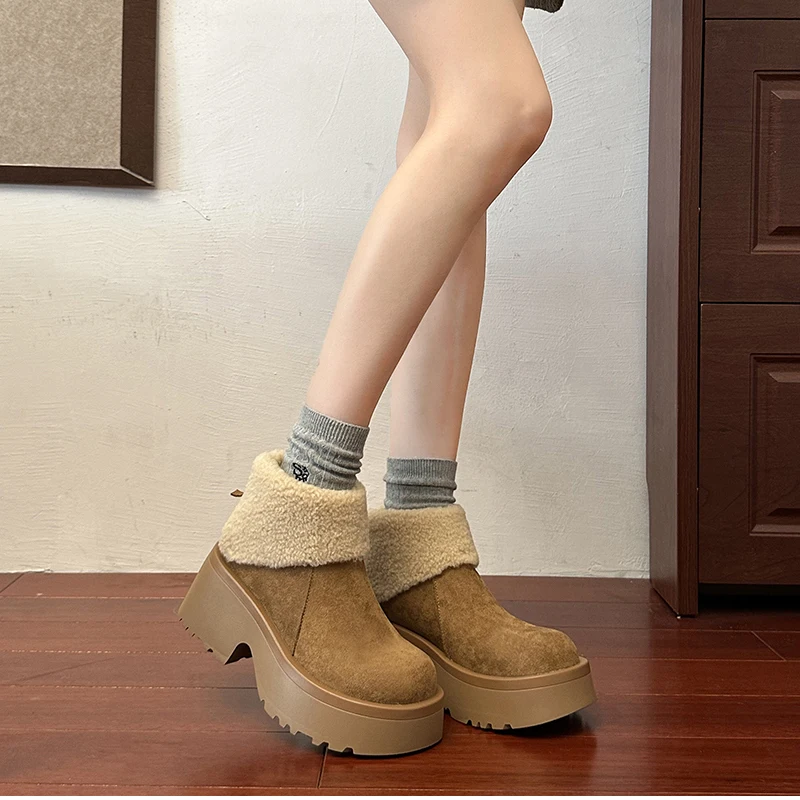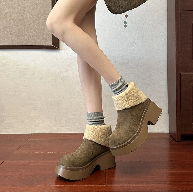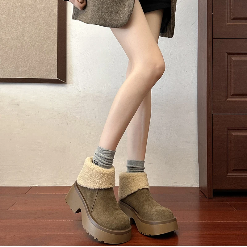 IFOMT - Winter Warm Plush Women Snow Boots Fashion Short Booties Comfort Thick Heel Cotton Shoes