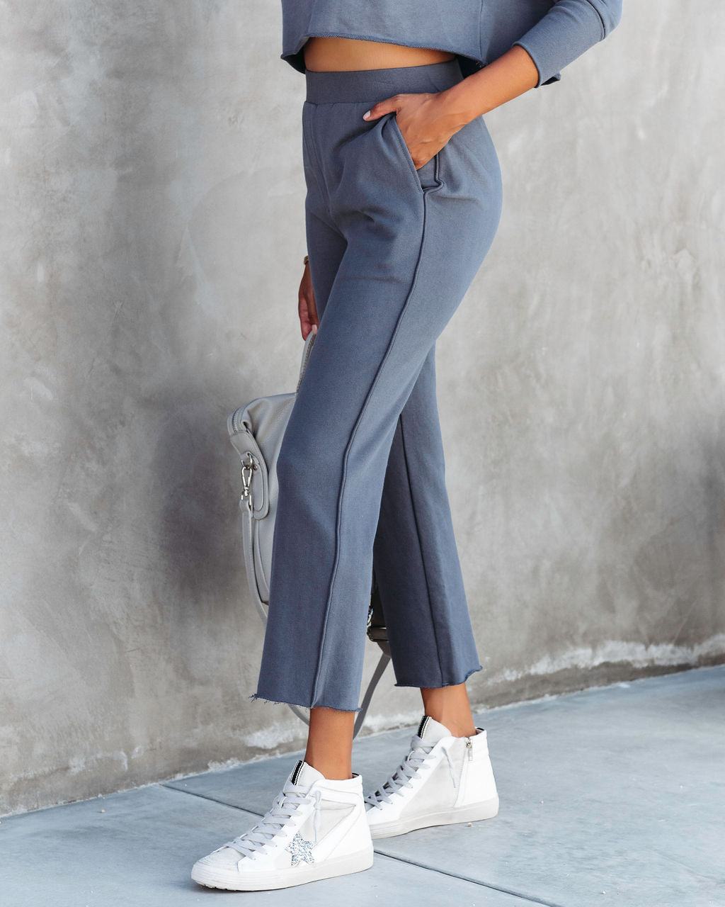 Travel in style in the Airport Glam Cotton High Rise Pocketed Pants in grey blue that feature an elastic waistband.