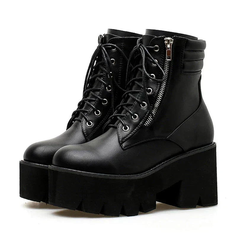 Autumn Ankle Boots For Women Motorcycle Boots Chunky Heels Casual Lacing Round Toe Platform Boots Shoes Female
