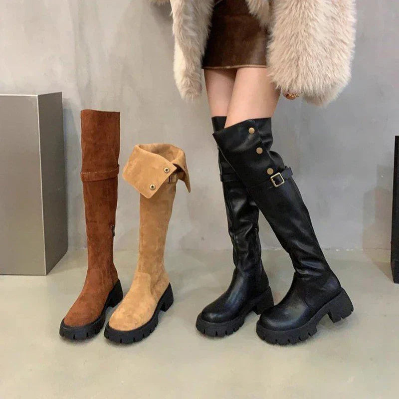 Autumn Winter Platform Women Over The Knee High Boots Fashion Slip On Thick Heels Shoes Ladies Knight Long Botas De Mujer
