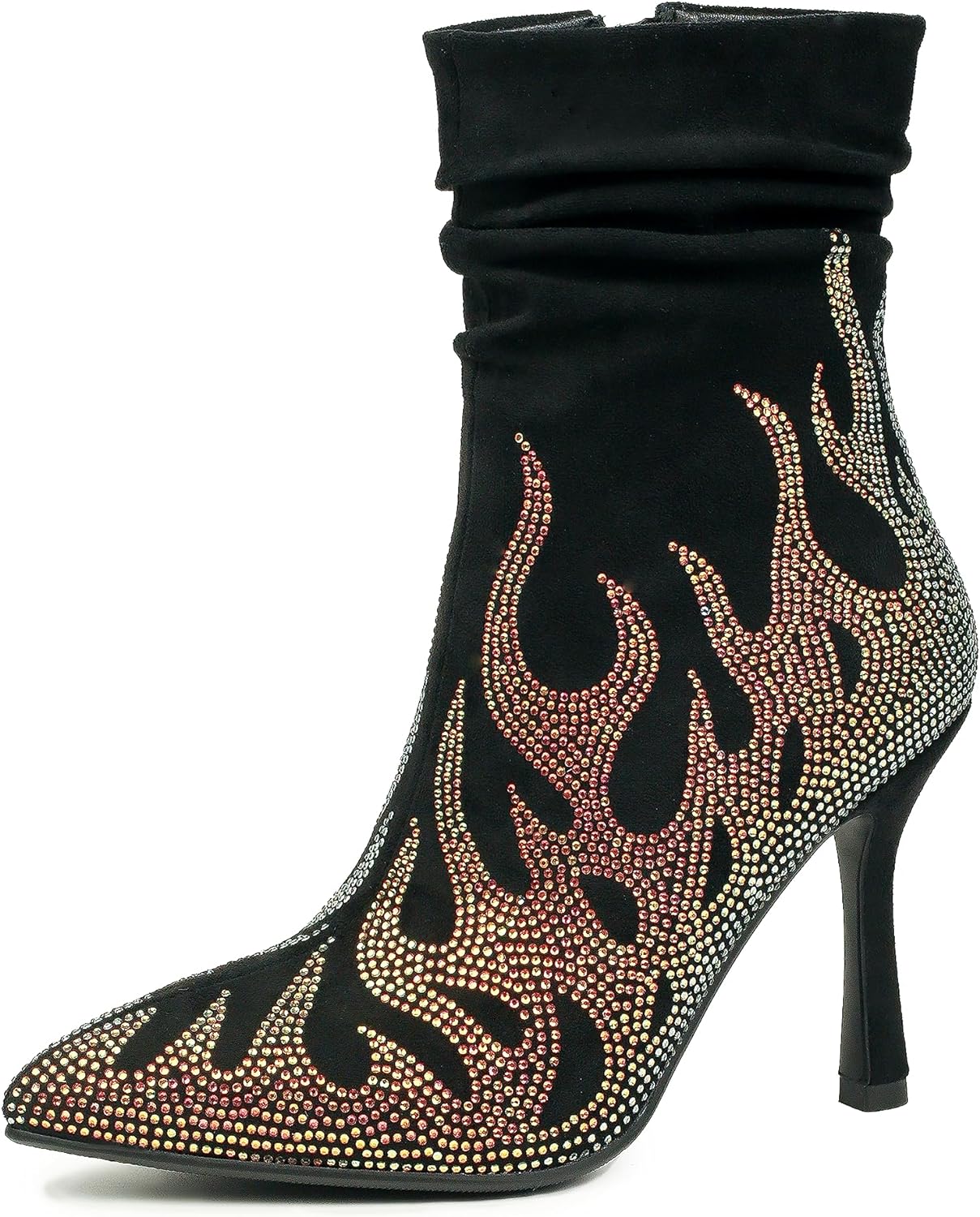 Create a dazzling fashion statement with these Rainbow Rhinestone Embellished Stiletto Heel Ankle Boots. Featuring a stunning rhinestone embellishment. these trendy and durable ankle boots are sure to become a favorite. Step out in style with confidence.