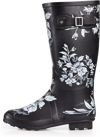 Black Floral Waterproof Rain Boots Water Shoes