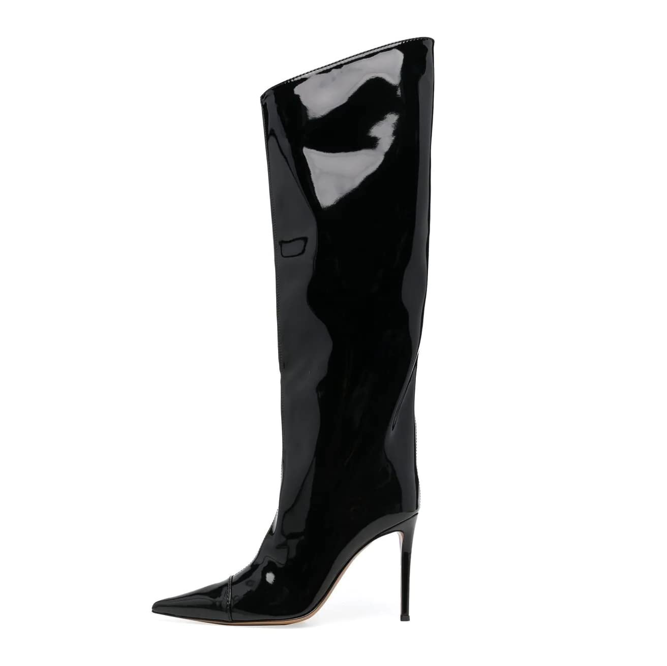 These Fashion Forward Metallic Knee High Stiletto Boots offer eye-catching style with their luxurious metallic exterior. The supportive stiletto heel and back zipper make them comfortable and easy to wear. making them an ideal choice for days spent out of the house.