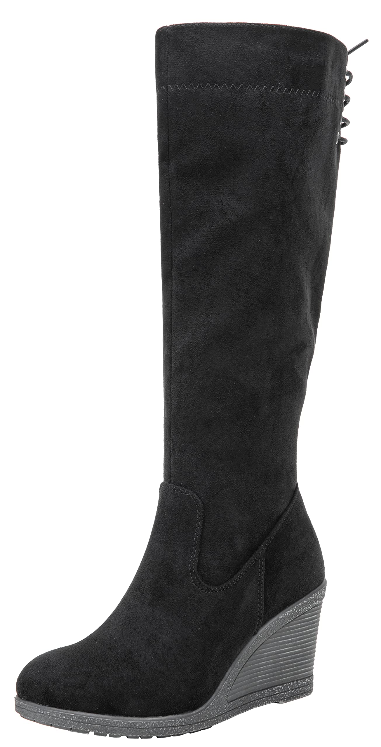 Be stylish and comfortable even in cold weather with these Winter Fab Knee High Wedge Boots. Crafted with premium faux leather. warm lining and a durable sole. these boots trade warmth for fashion while providing optimal foot support. They come with a stylish wedge heel and have a comfortable fit that will last all winter long.
