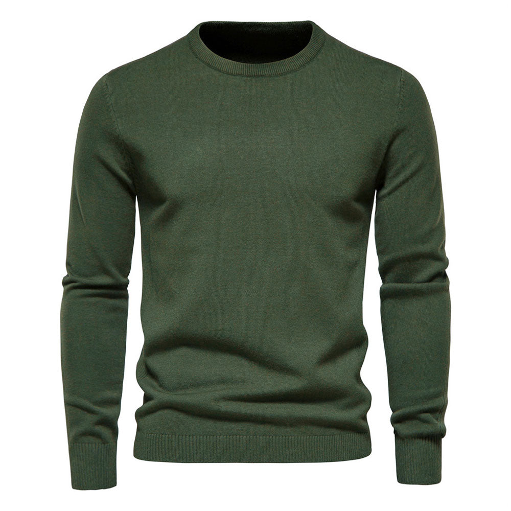 Functionality at its chicest. our classic pullover sweater embodies the essence of winter style. This solid color men's knitwear is the quintessential choice for the season. featuring a classic crewneck jumper style and long sleeves. Fine ribbing on the round neck. cuffs. and hem exudes an understated sense of simplicity and refinement. Crafted from an acrylic blend. this slim fit sweater weighs 0.99 lbs. promising both warmth and sophistication. Top it with our high neck cardigan for a seamless fusion of style and practicality.