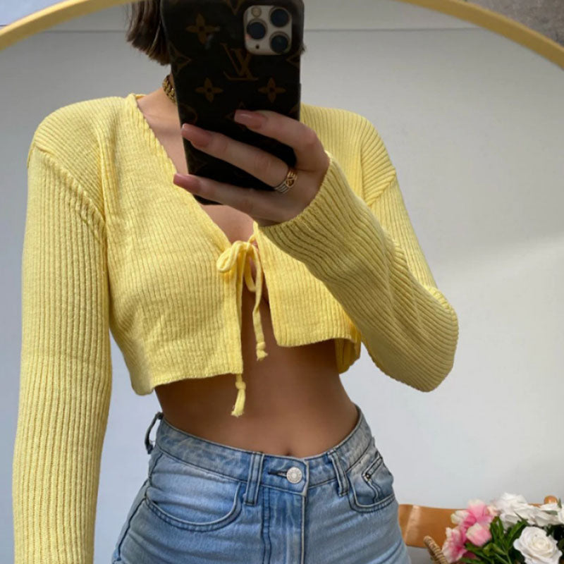 This short cardigan is simple enough to be worn as a top or a cardigan. and the classic ribbed texture is popular for its versatility and feminine balance. The classic V-neck allows for beautiful layering. and the single tie detailing adds a nice accent. making it look super hot when it's worn alone. We designer brand made it the short length to the waist. which is easy to match with a variety of bottoms.expanding the width of your fall wardrobe with multiple activities. Take cues from the the pictures and creative your own style with this piece.