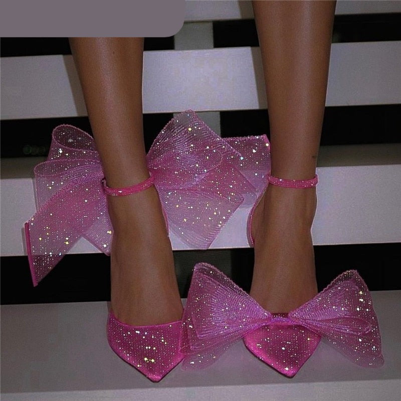Big Butterfly-Knot Sandals Woman Summer High Heels Women Pumps Pointed Designer Shoes Mary Janes Sexy Stiletto Wedding Shoe