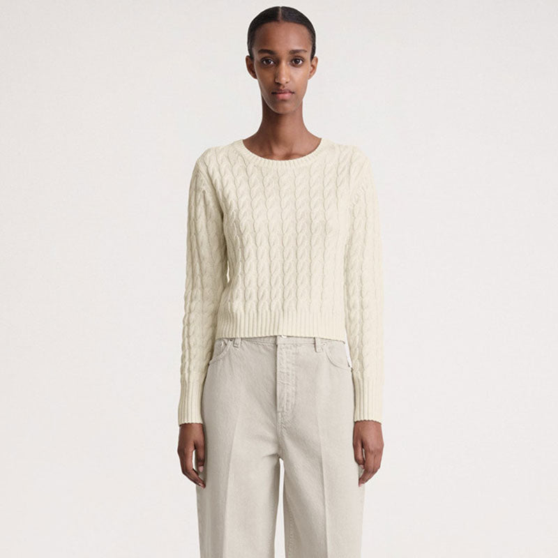 A well-curated cable knit is essential. not just for comfort but also as a cornerstone of a stylish winter wardrobe. Our cable knit jumper embodies this necessity. marrying effortless chic with understated luxury. This monochrome knitwear features a ribbed knit round neck and long sleeves with cuffs. all trimmed with a timeless ribbing knit pattern. The semi-loose fit ensures comfort and style in a lightweight design. weighing a mere 0.66 lbs. This cream hue jumper effortlessly elevates your winter ensemble. adding a touch of casual elegance.