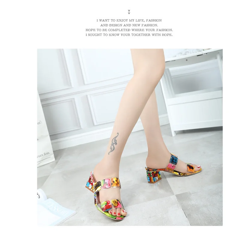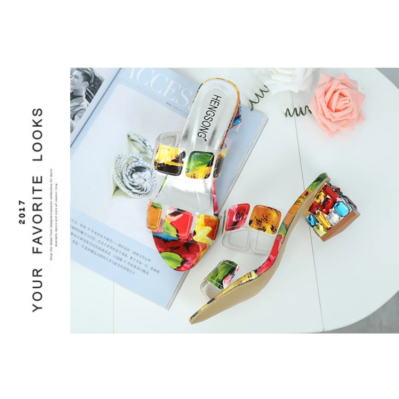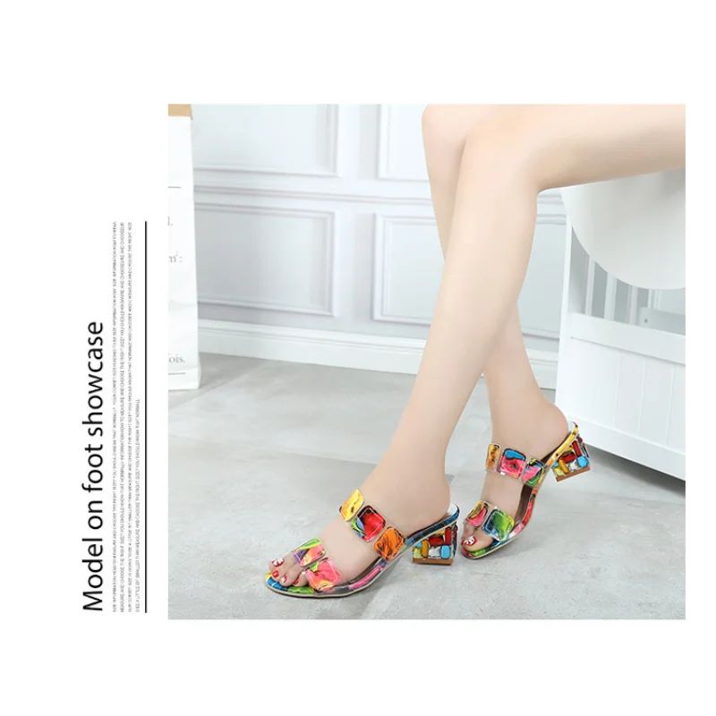 Colorful Summer New Sandals Women's Summer Fashion Chunky Heel Rhino Horn Mid-heel Flip-flops Korean Version Sandals shoes23y 5m 25d