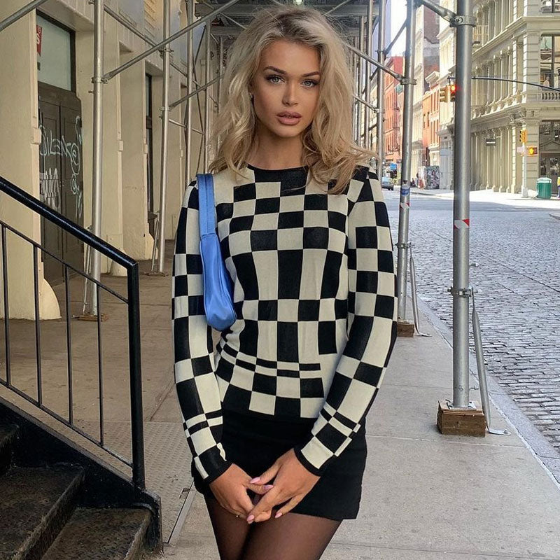 Introduce the plaid trend to your look with the contrasting-hued knit top. Featuring irregular checkered prints throughout. the knit pullover is crafted from a soft cotton-blend fabric with the classic round neckline and long sleeves. Ideal to wear it transcending the seasons. the top is in a fitted cut with just the right amount of thickness. Bound to bring pops of colors into your go-to ensemble. the knit top comes in red. black and green options to choose from. It's versatile enough for your multiple personalized styling. To add a casual vibe. wear yours tucked into high-rise pants and match with sneakers.
