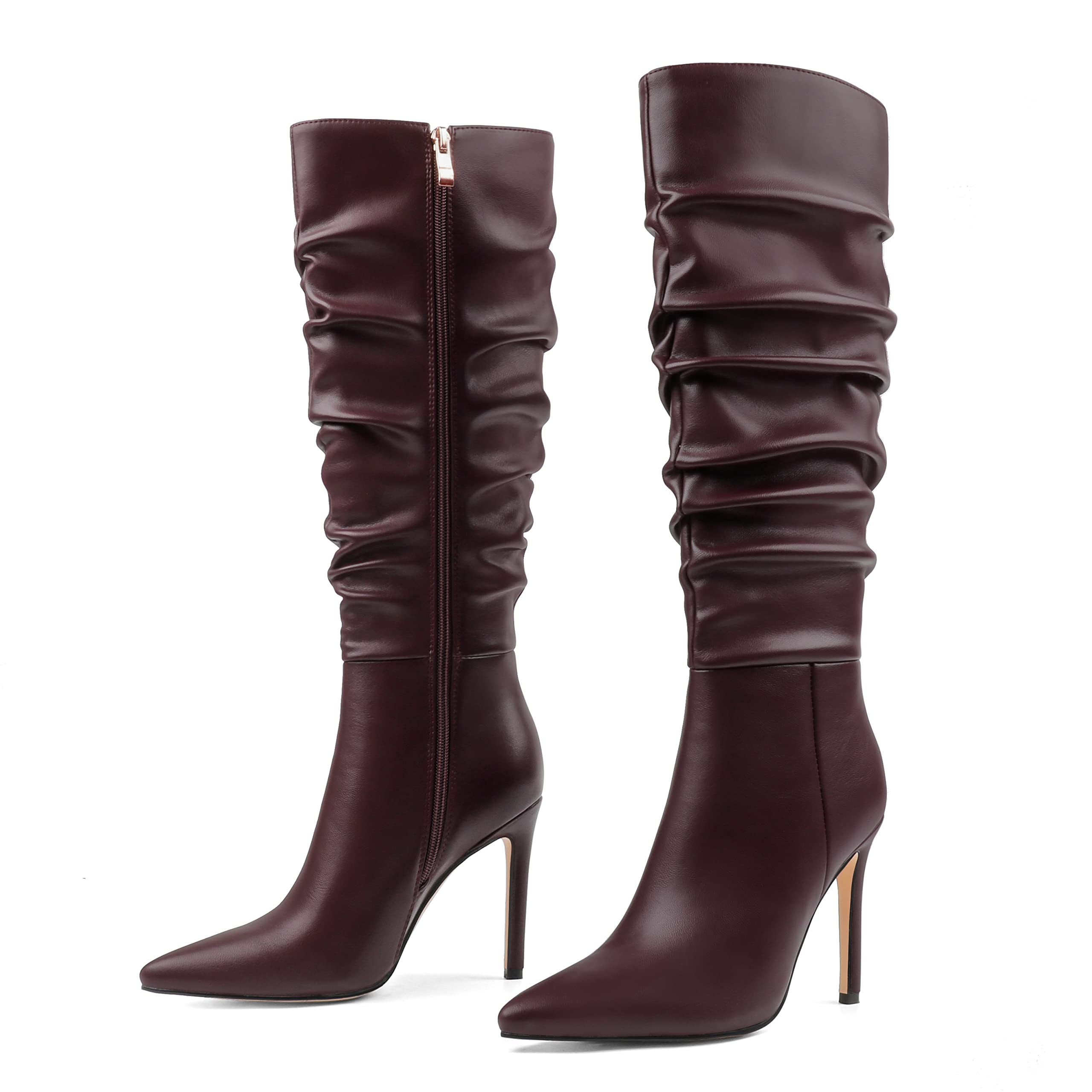 Burgundy Slouchy Working Girl Stiletto Faux Leather Boots