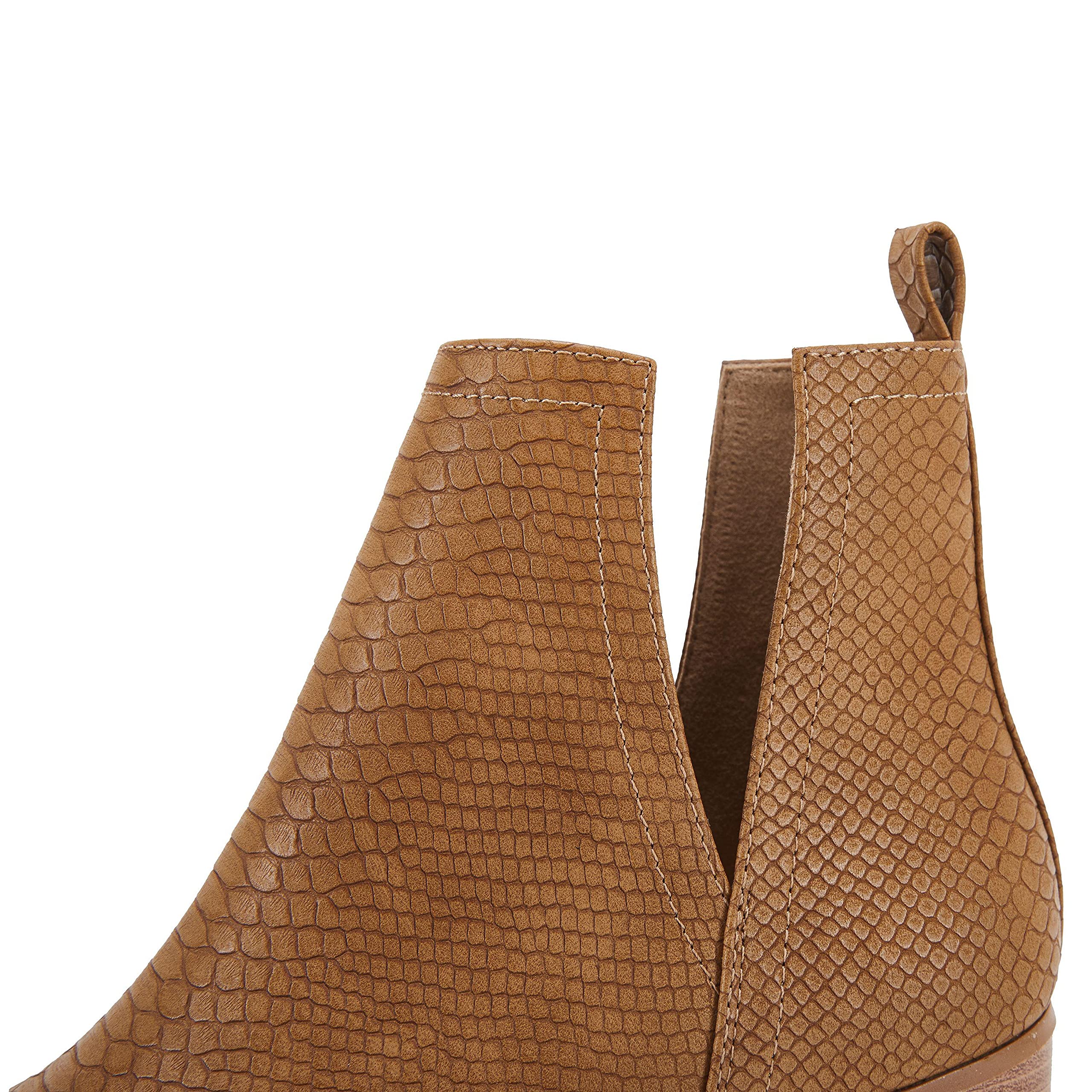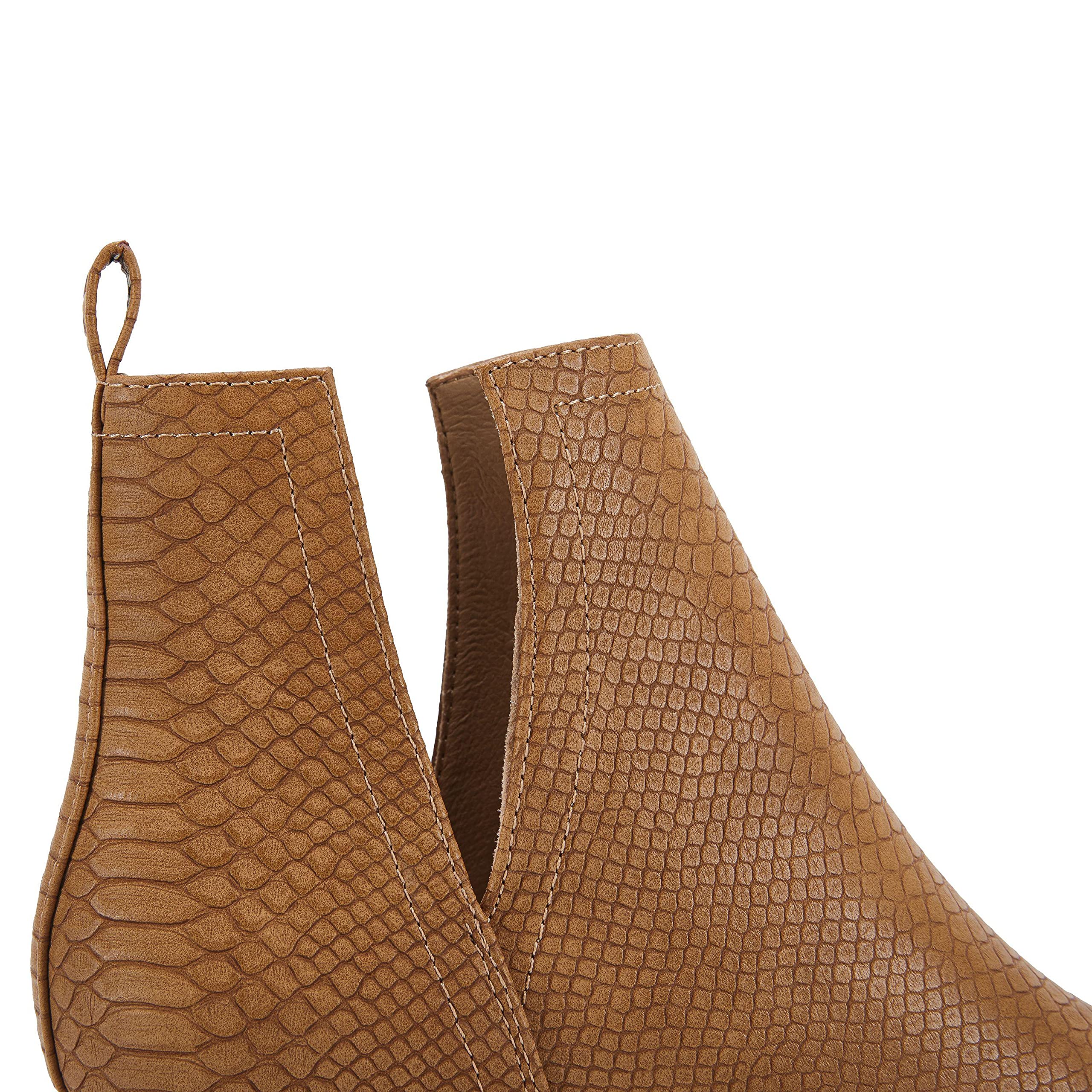 Light Brown Snakeskin Faux Leather Closed Toe Ankle Booties