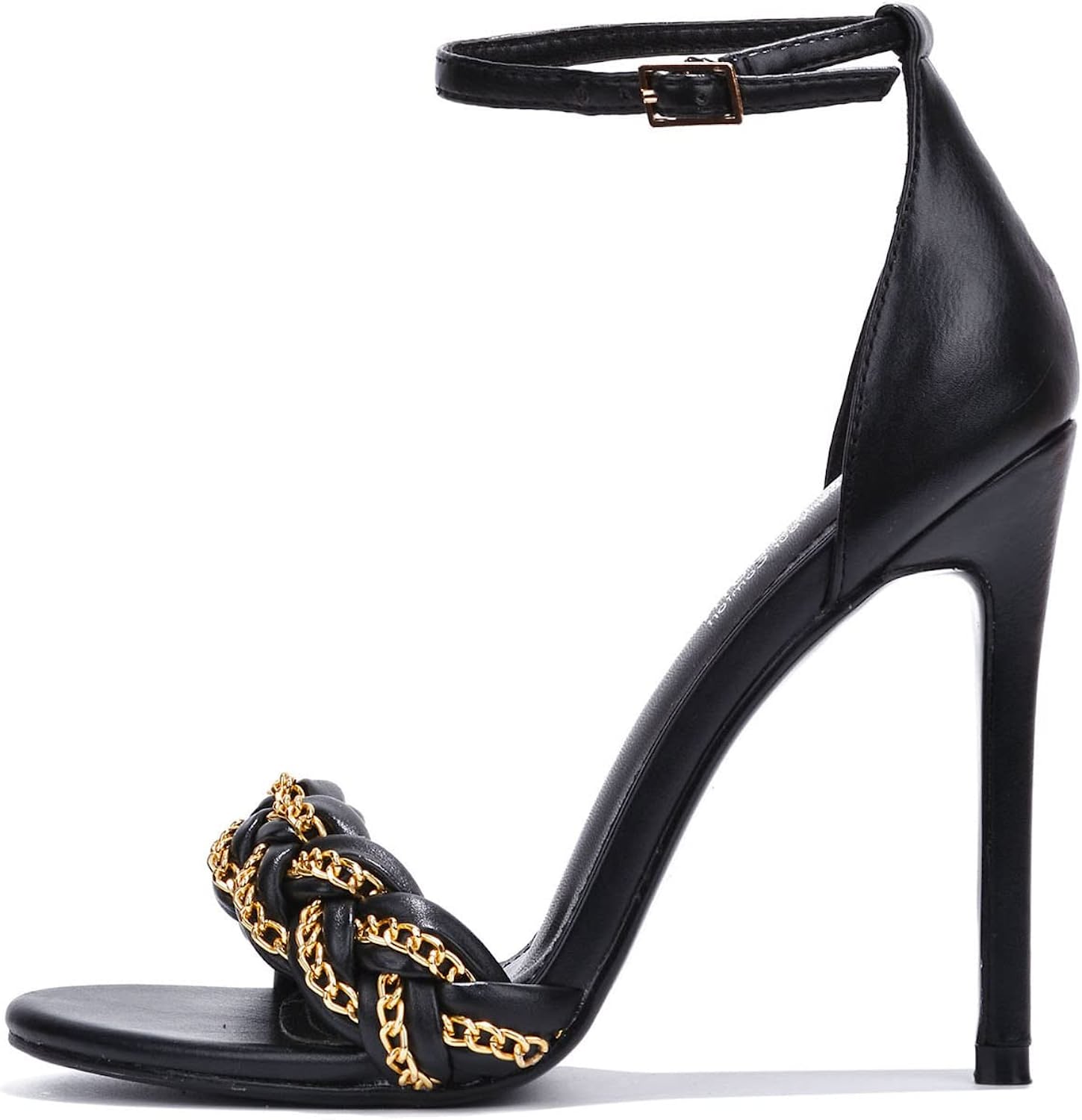 Braided Chain Strap Black Strappy Stiletto High Heel