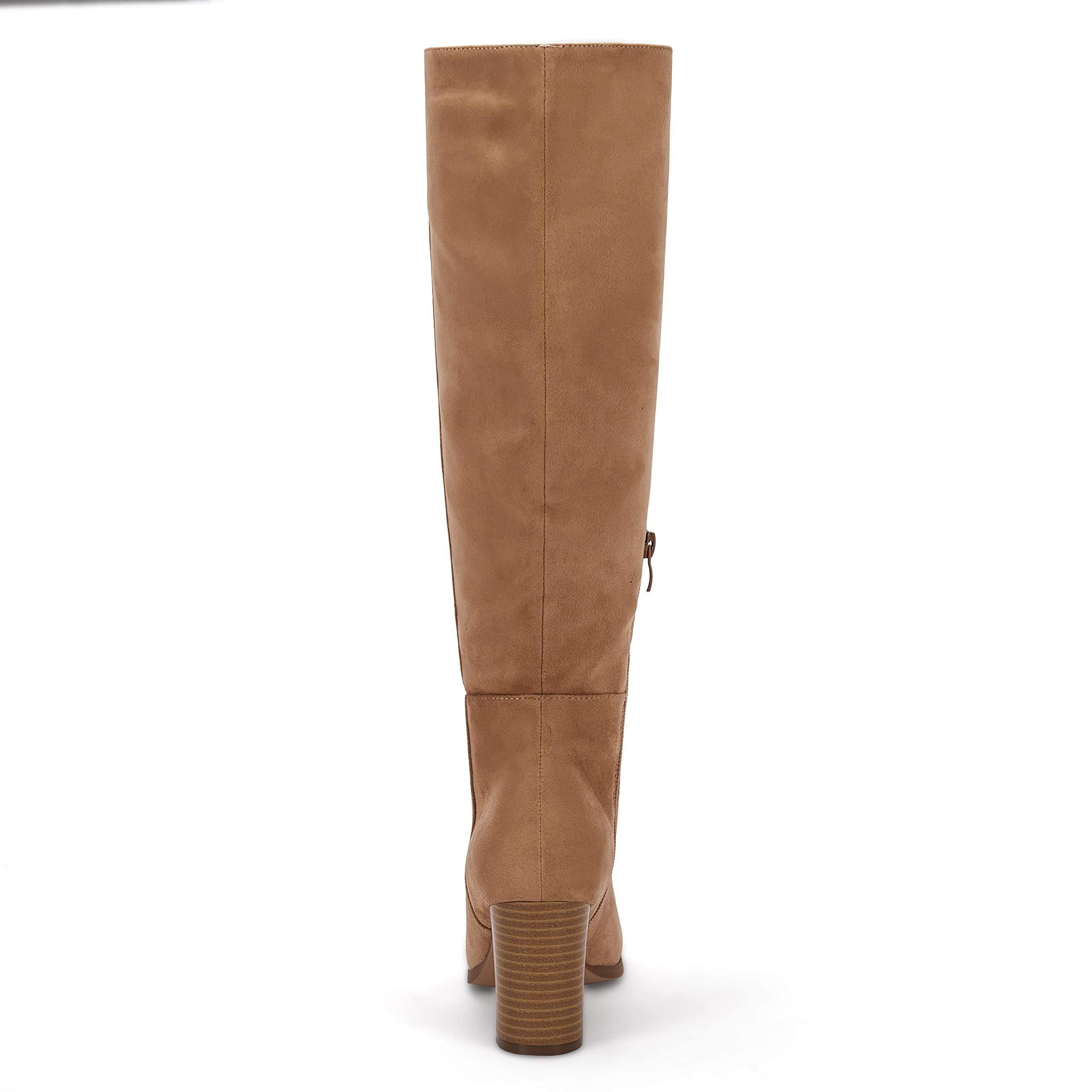 • 👣【Features】Square toe. stacked chunky block heels. knee high boots. side zipper. thigh high fashion boot. wide calf.Sleek and simple. these classic booties are very versatile and very everyday!There are two different materials to choose from. faux leather or faux suede!