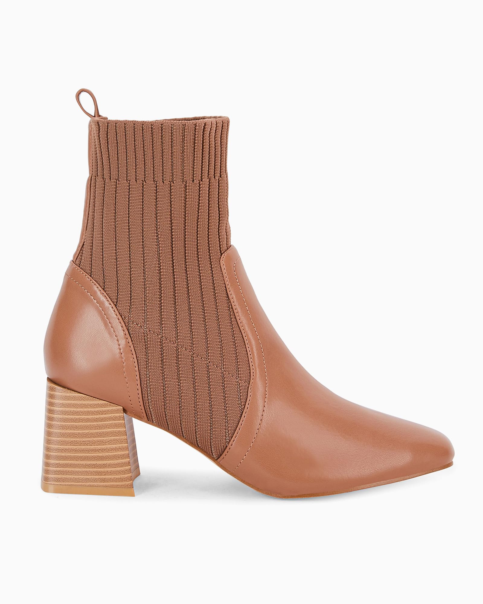 - �Comfort: Our block heel sock boot heel is about 2.5 inch. Stacked chunky heel for stable steps. elastic knit upper fit your feet better. square toe allow for space for your feet and move. easy on and off