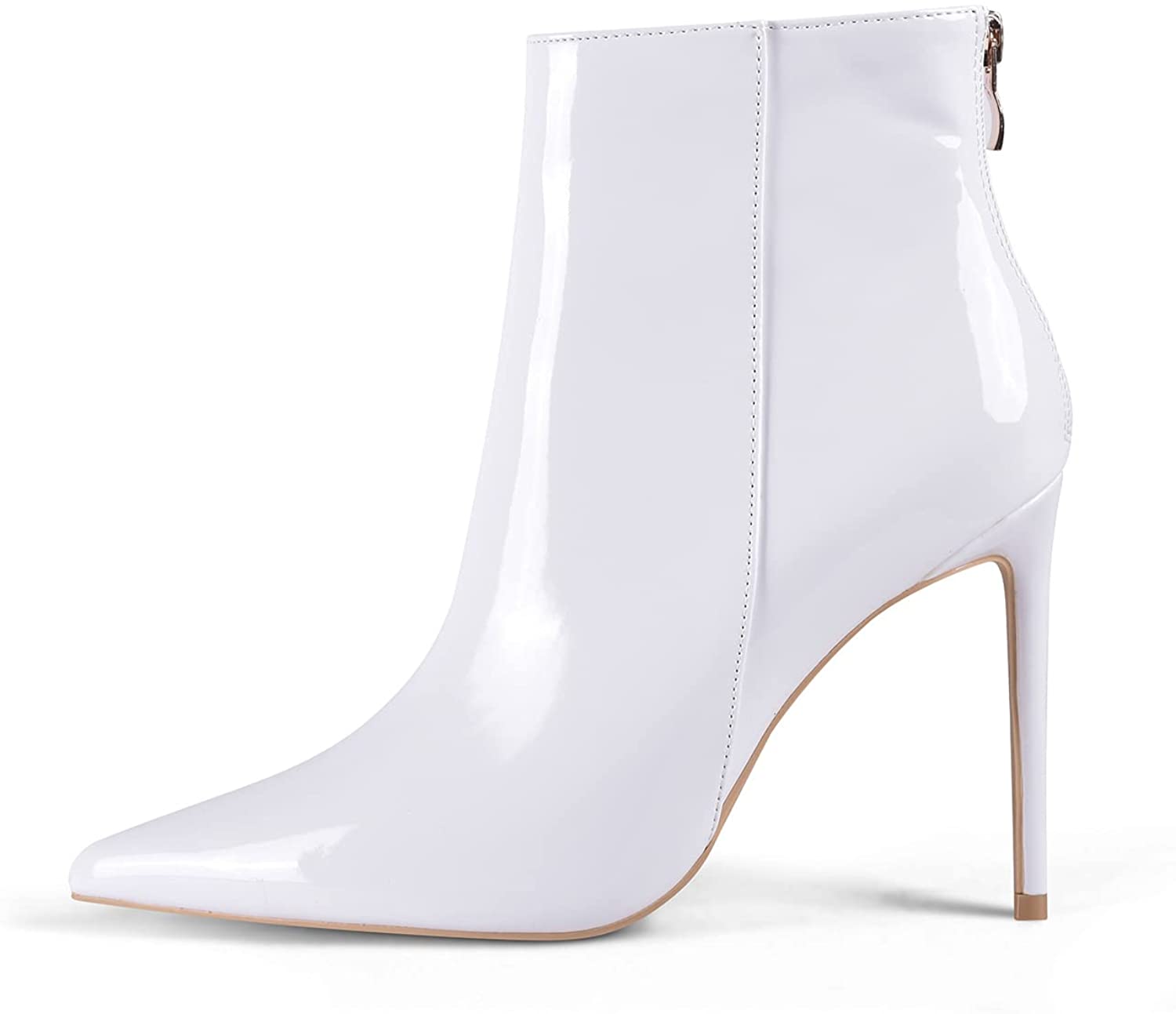 Fashion White PU Pointed Toe Heeled Ankle Booties