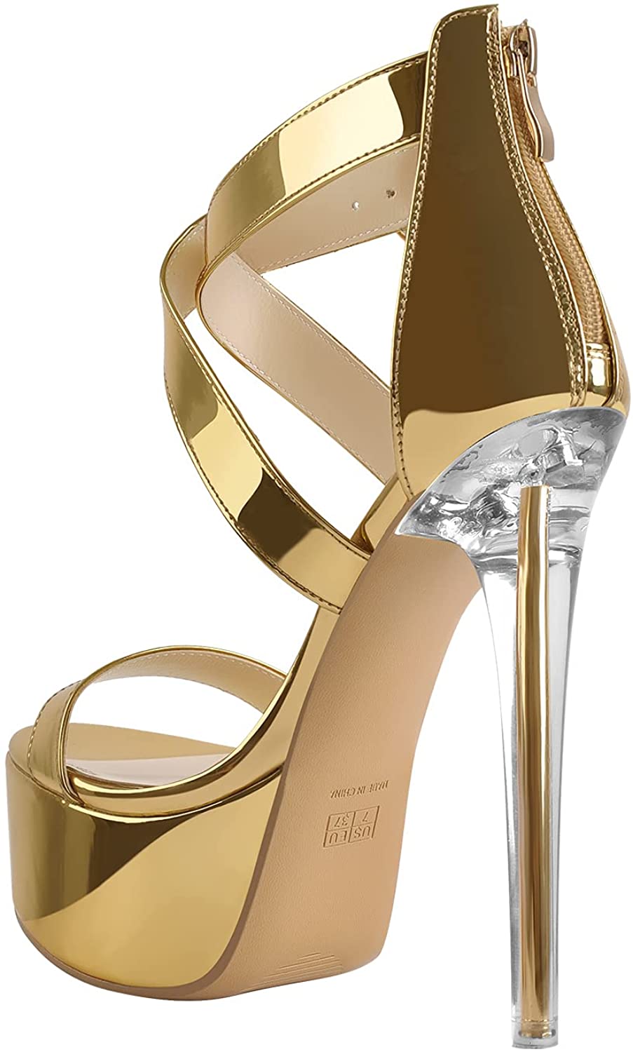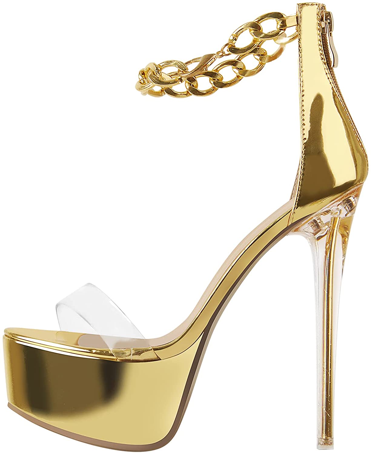 Gold Clear Heel Open Toe Ankle Strap Sandals