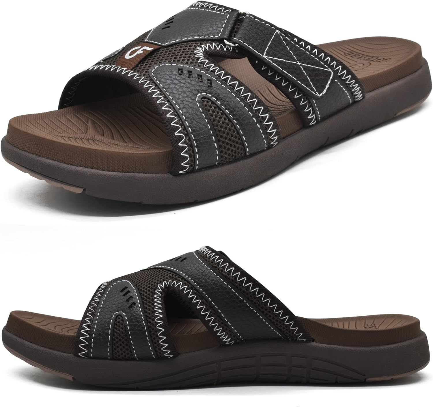 Men's Soft Cushion Brown Arch Support Slip In Sandals