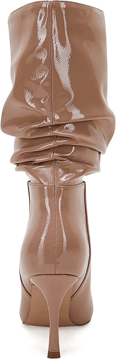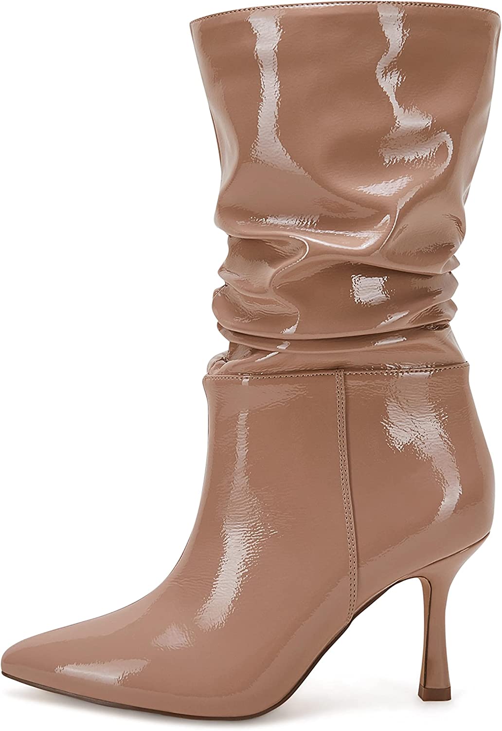 These stylish and fashionable Mid Calf Khaki Faux Leather High Stiletto Boots are perfect for any occasion. The boots feature a faux leather exterior and a high stiletto heel for a sleek. professional look. The mid calf height is both comfortable and chic. making them ideal for any outfit.
