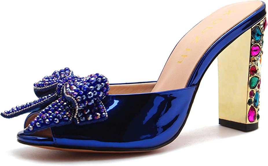 Look your best with these Azure Blue Rhinestone Embellished Women's Evening Gold Shoes. Crafted from a durable gold finish with azure blue rhinestones. these shoes provide luxurious comfort and style for any special occasion.