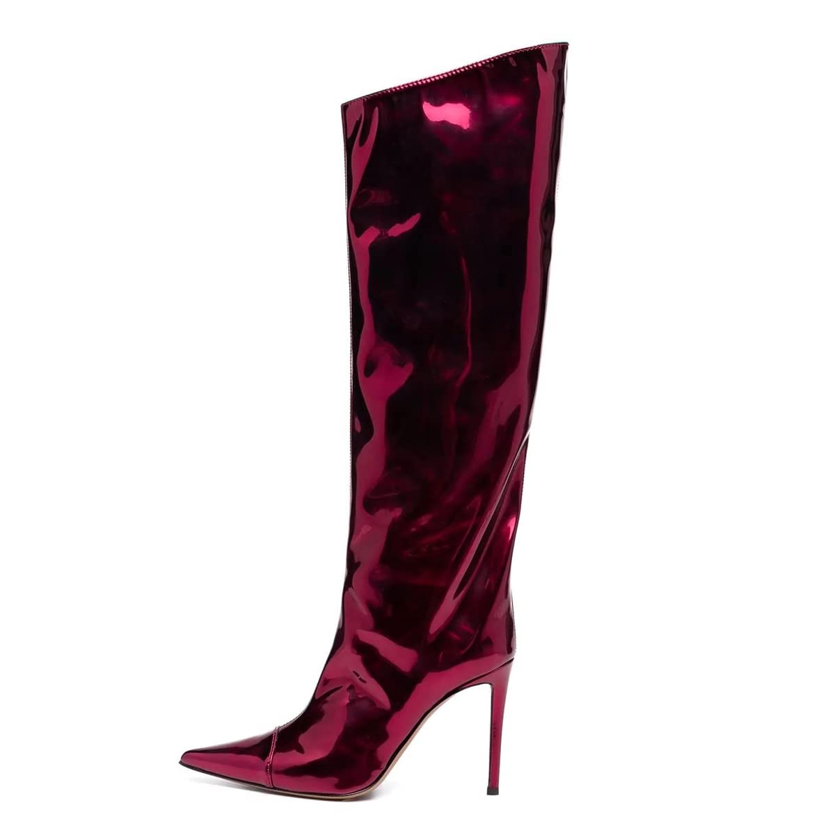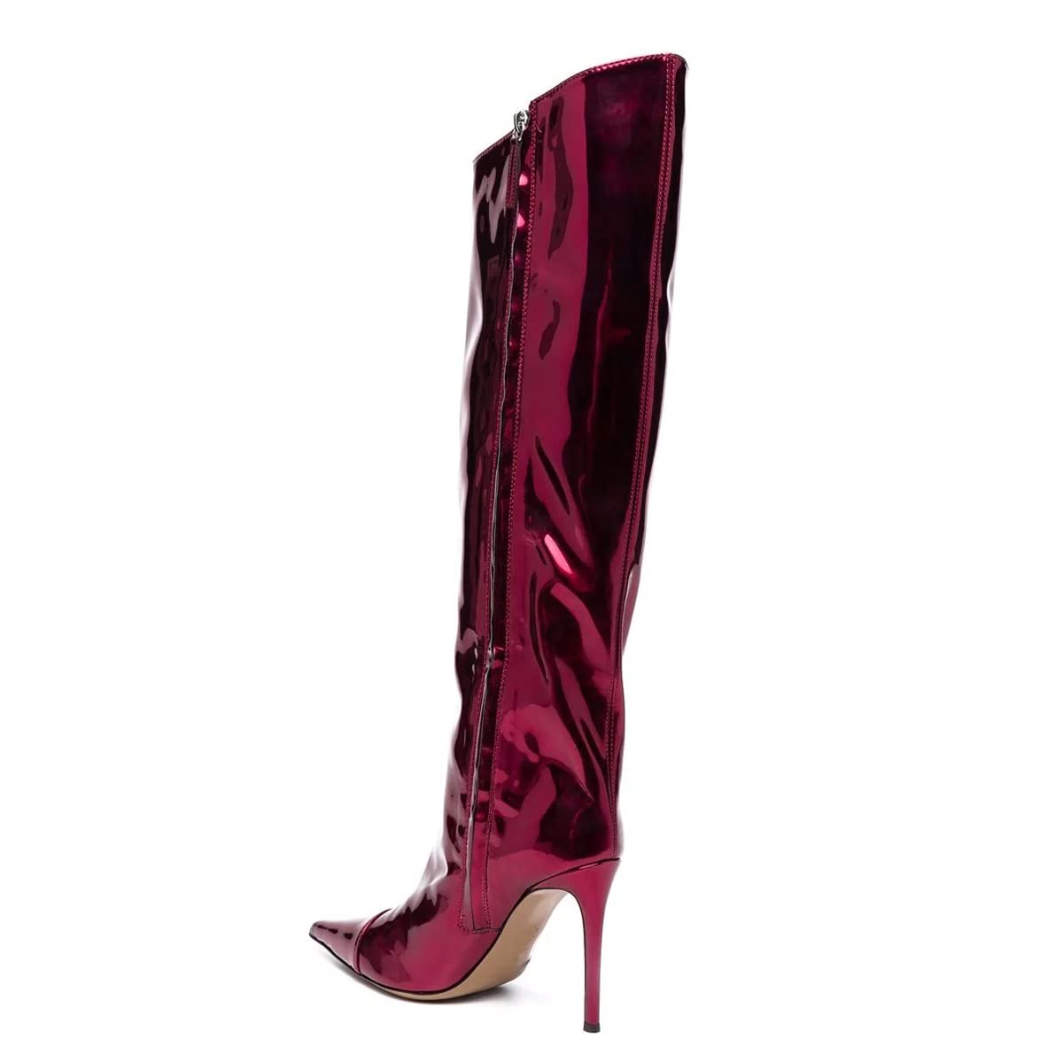 Wine Red Fashion Forward Metallic Knee High Stiletto Boots