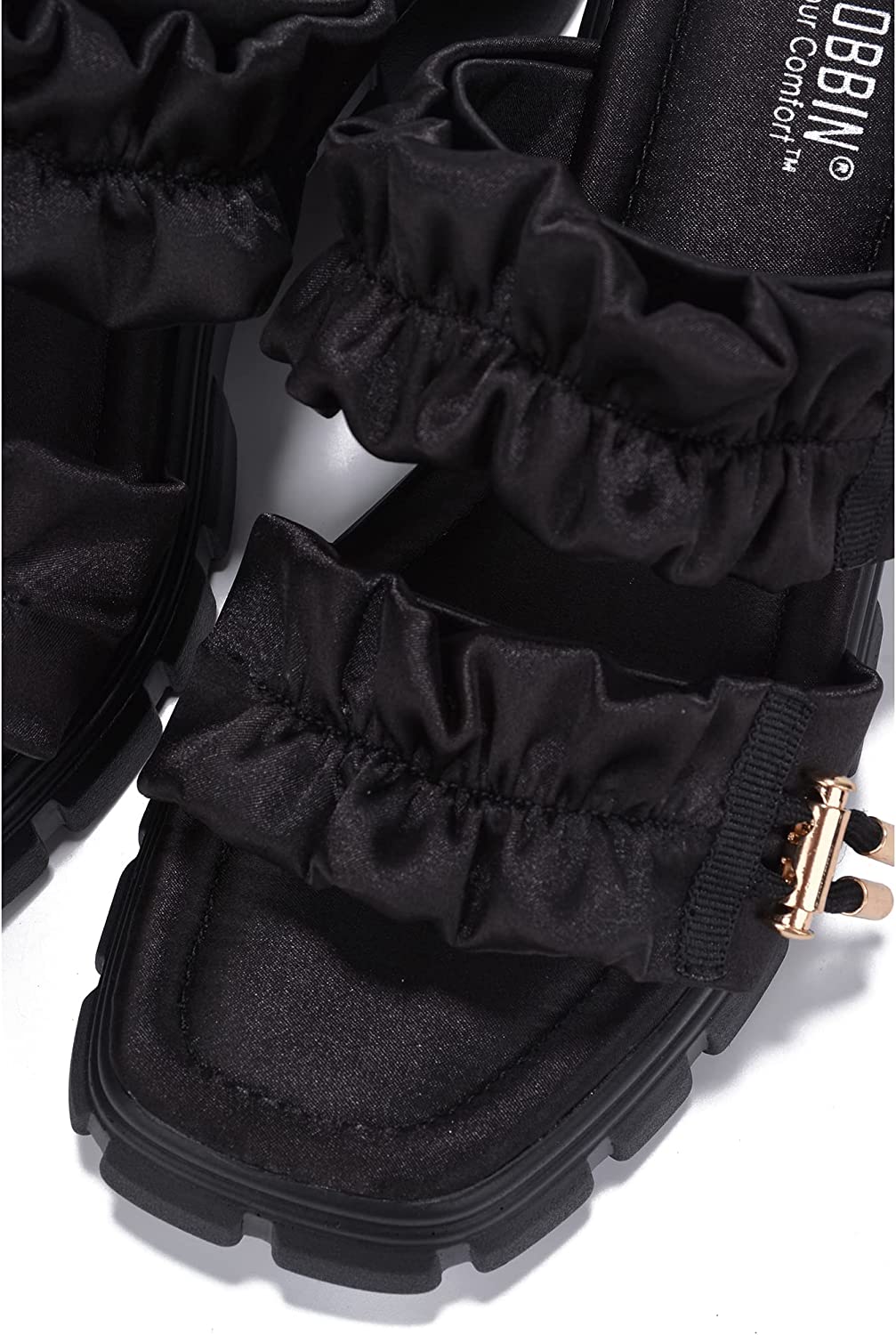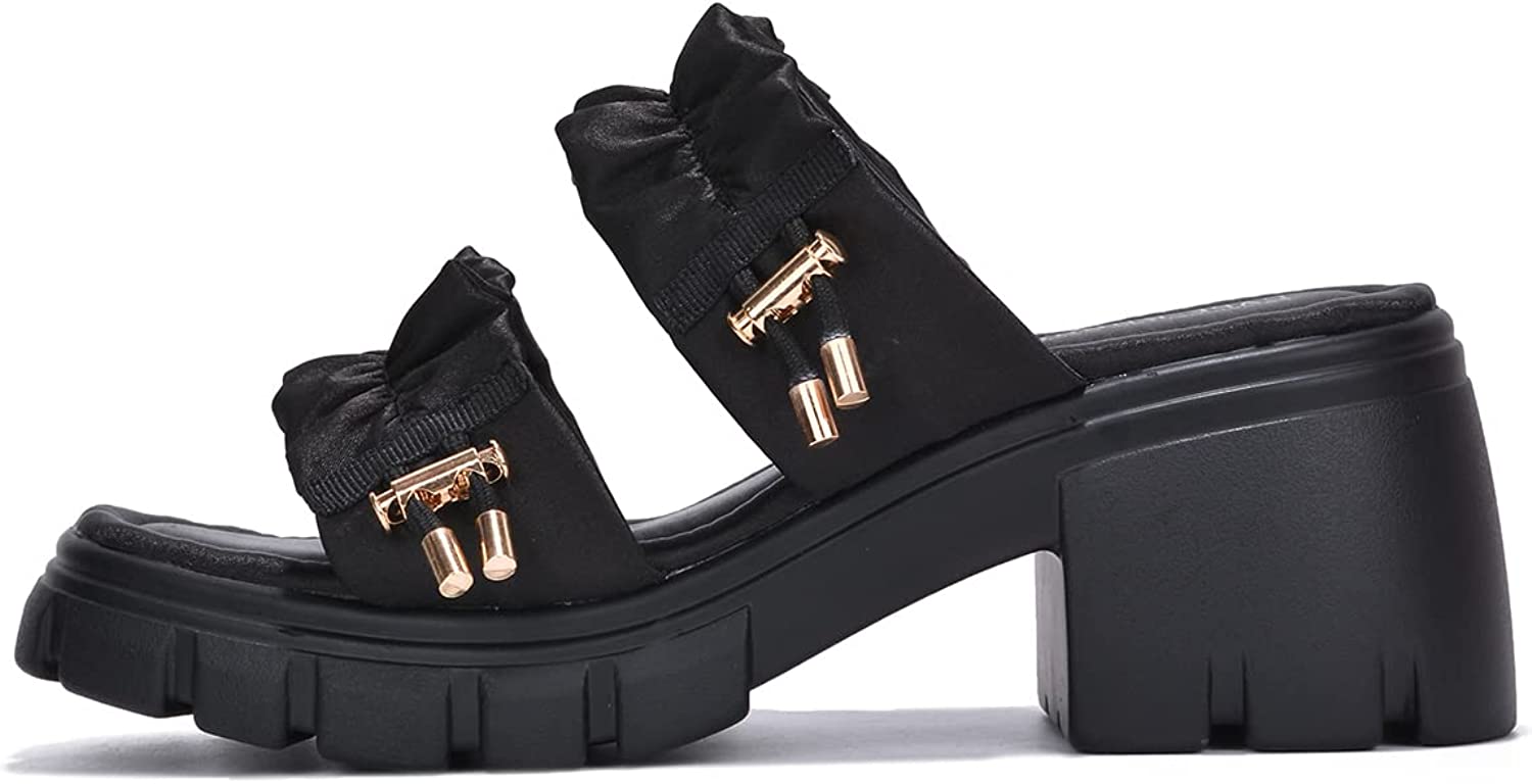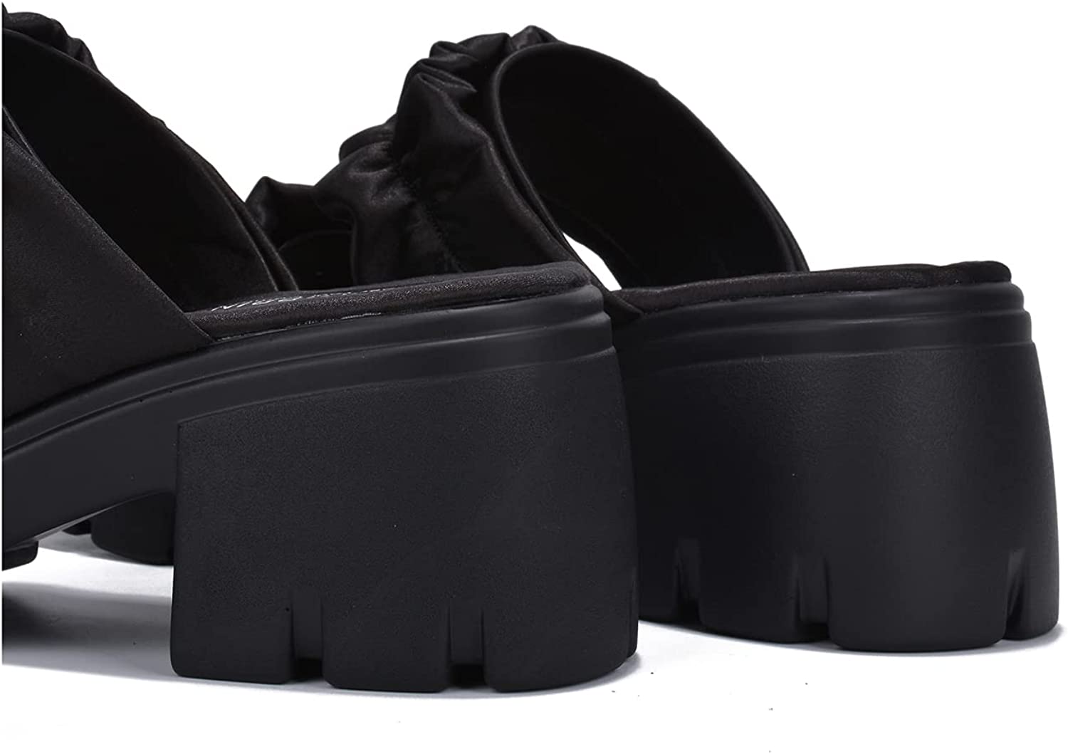 Slouchy Double Straps Black Low Block Heel Slip On Shoes
