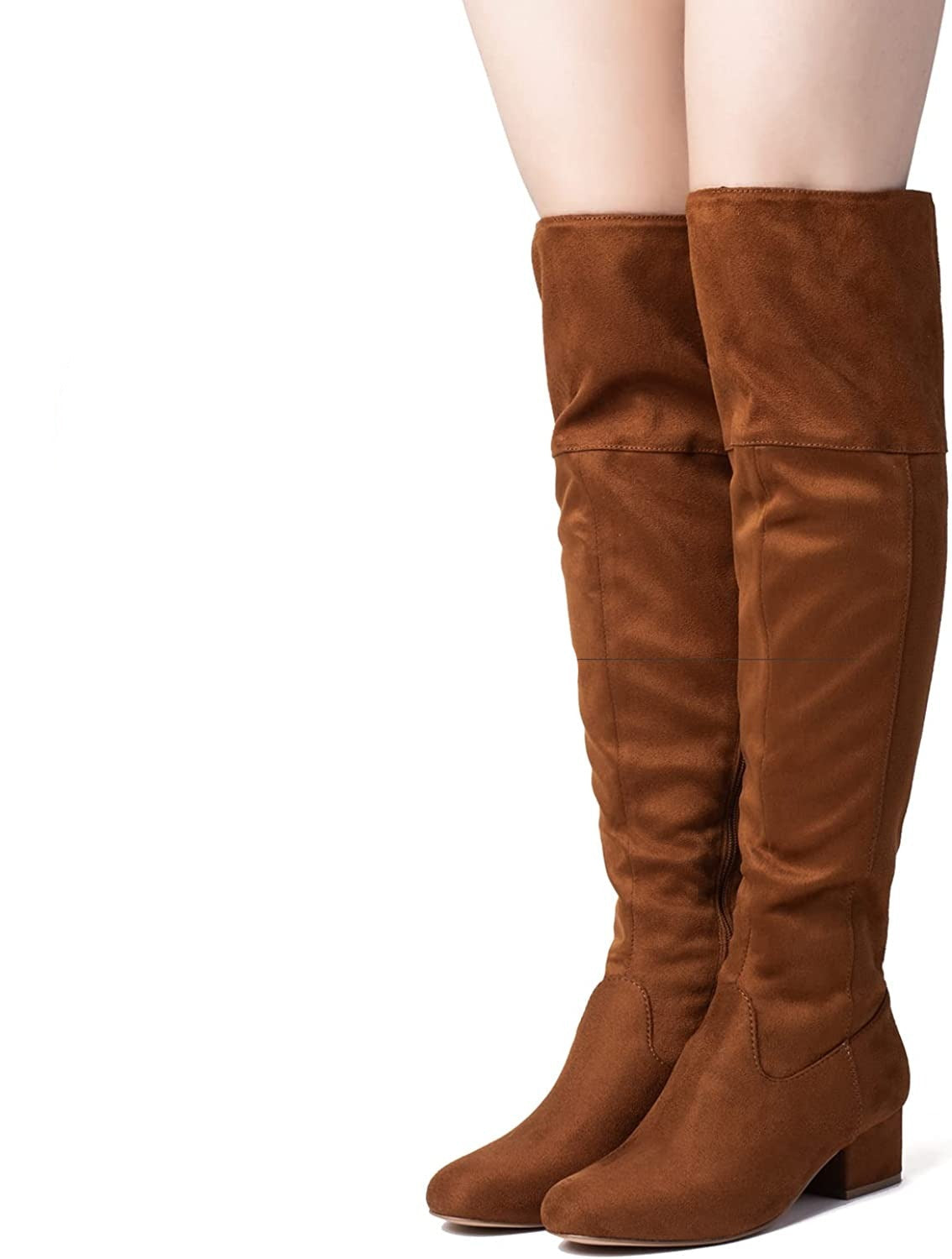 Suede Chunky Heel Brown Stretch Winter Knee High Boots