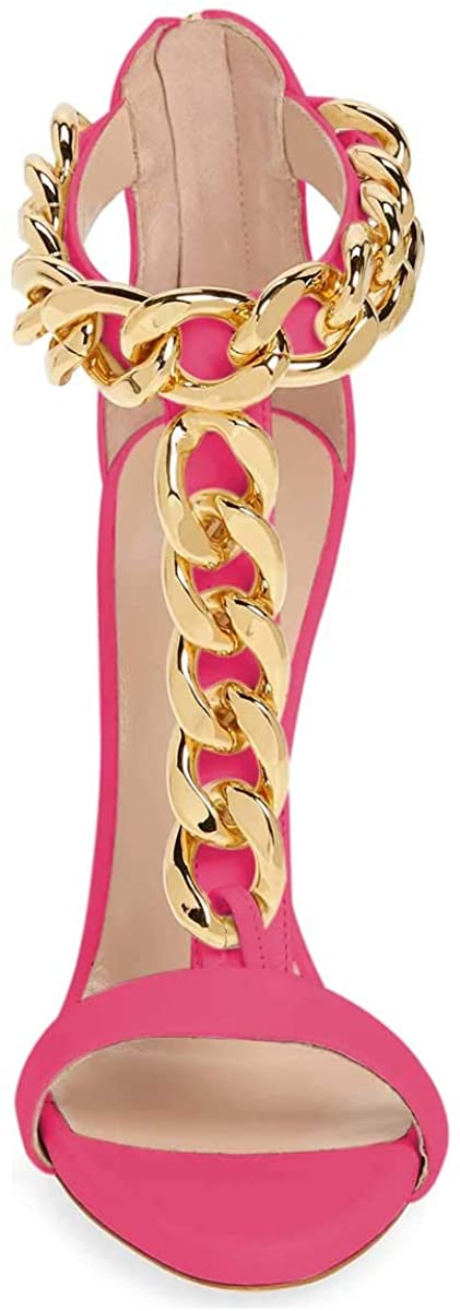 T-Strap Rose Metal Chain Ankle Strap Chunky High Heel Sandals