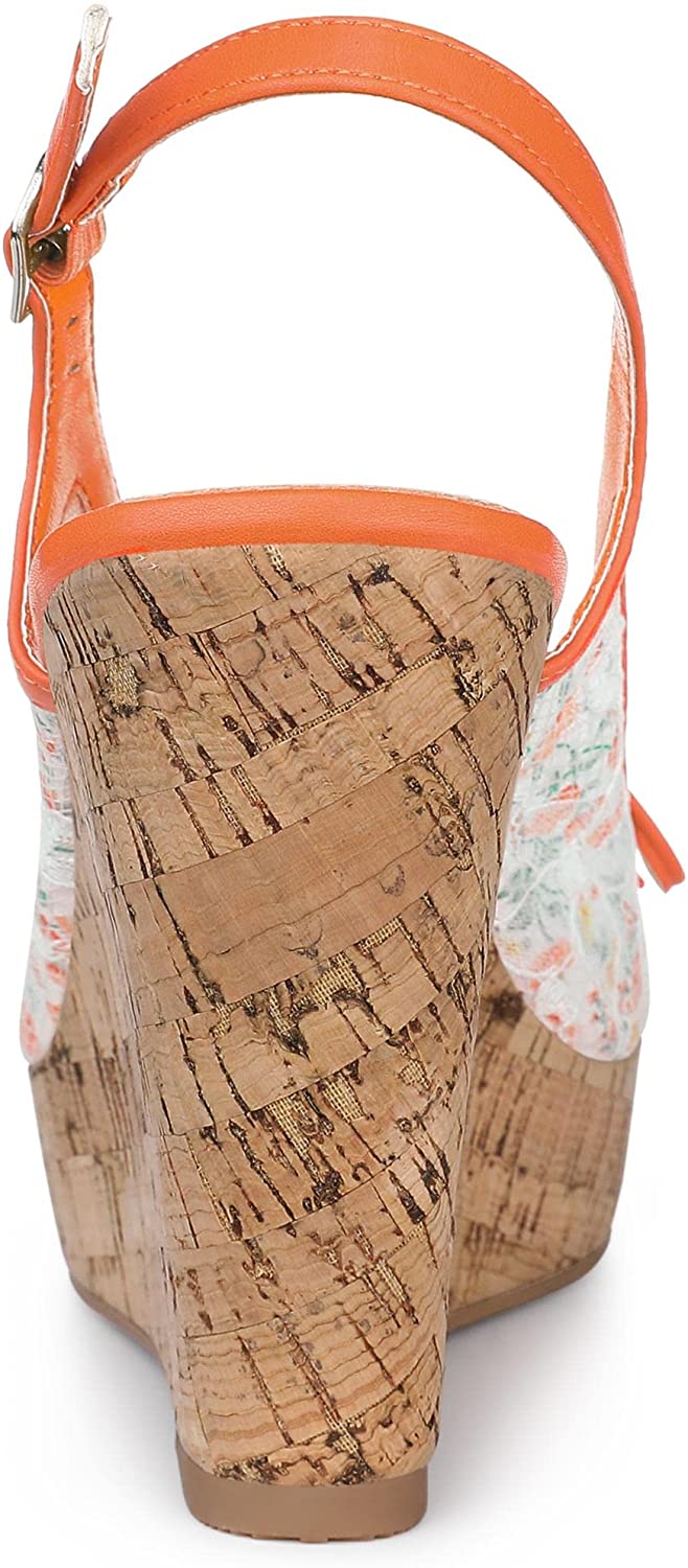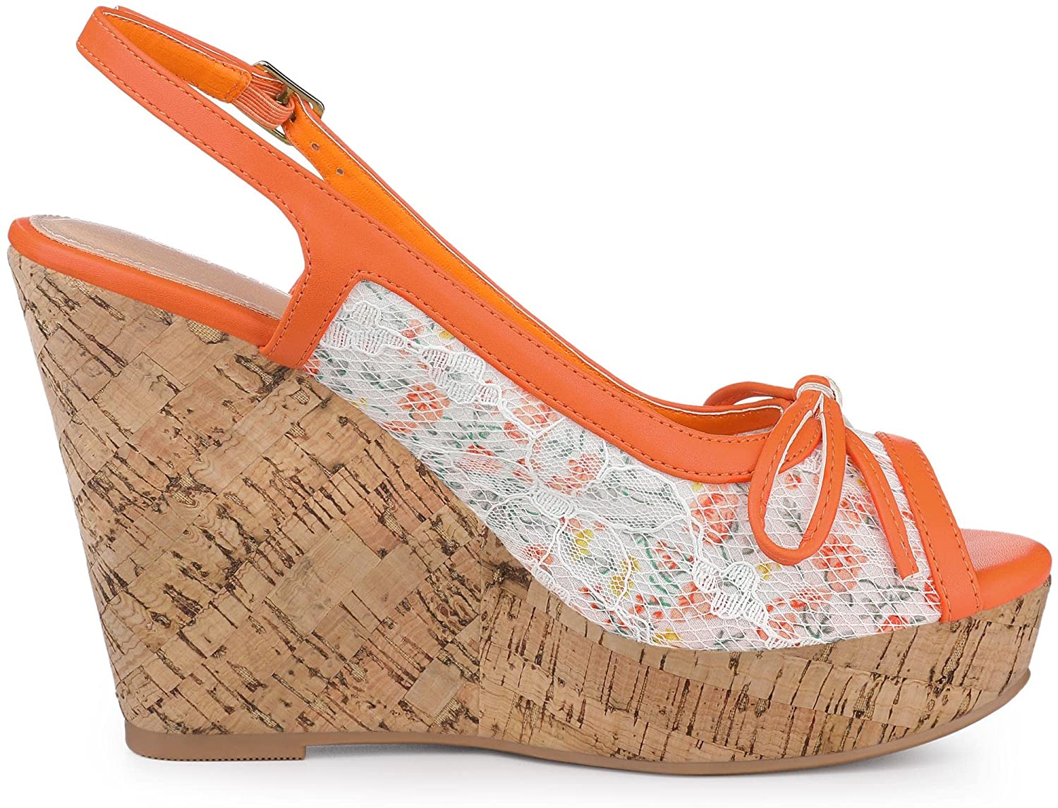 Urbane Orange Flower Lace Platform Wedge Heel Sandals