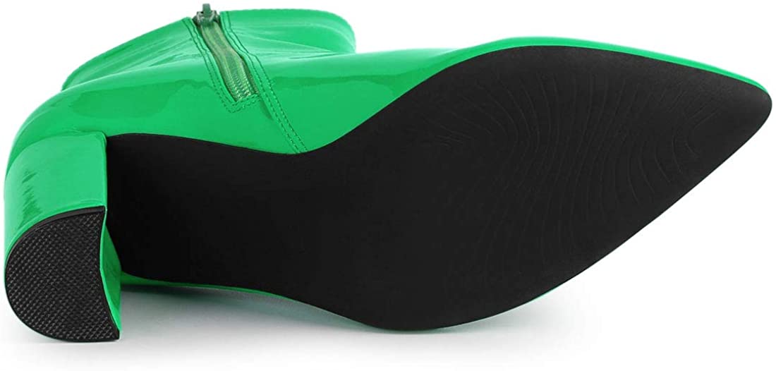 Walk Higher Green Chunky Heel Pointed Toe Zipper Ankle Boots