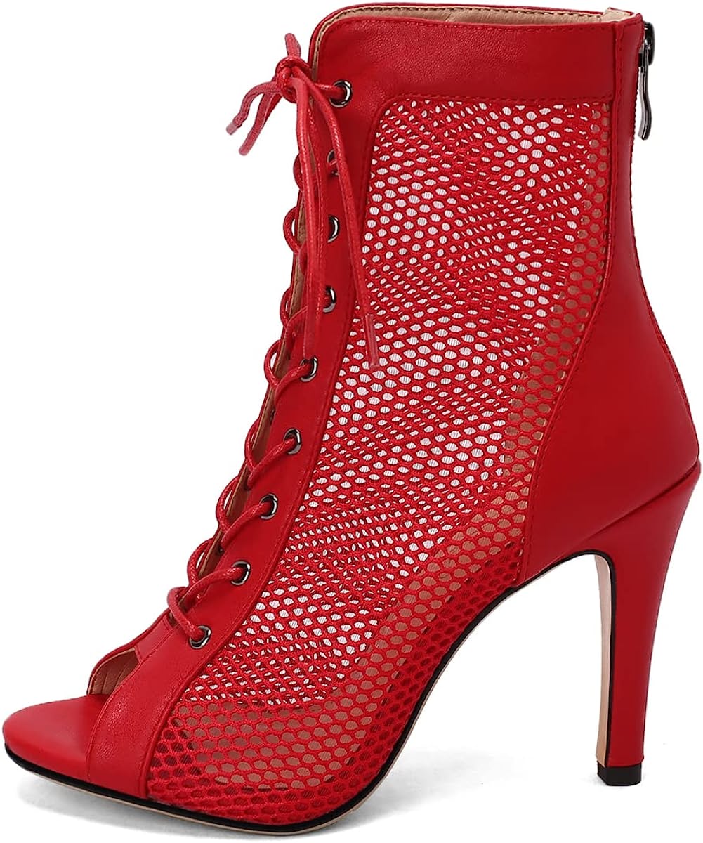 Red Leather Lace-Up Classic Gladiator Booties