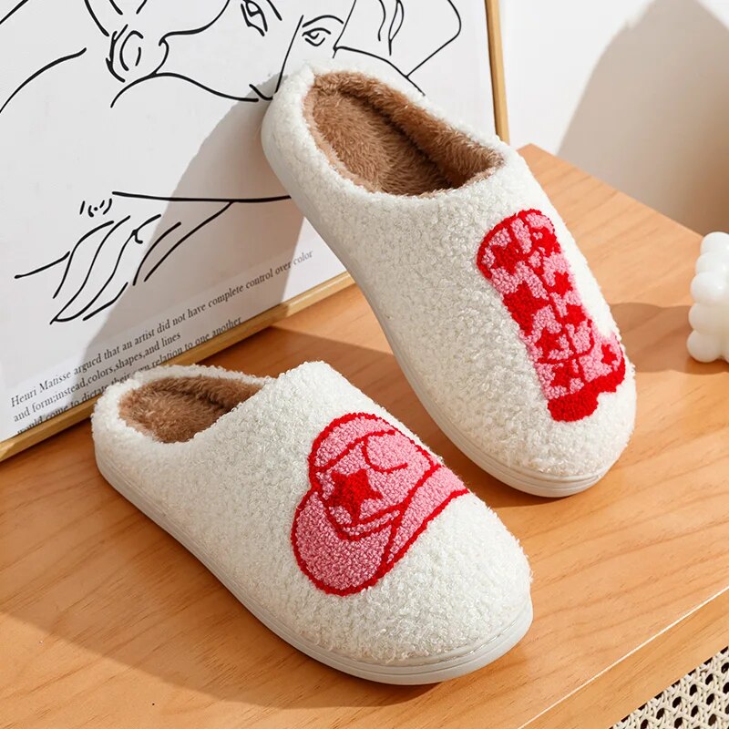 Whether you're sipping on a hot cocoa by the fireplace or simply enjoying a book. do it in style with the COWGIRL SLIPPERS by Mello Luni.