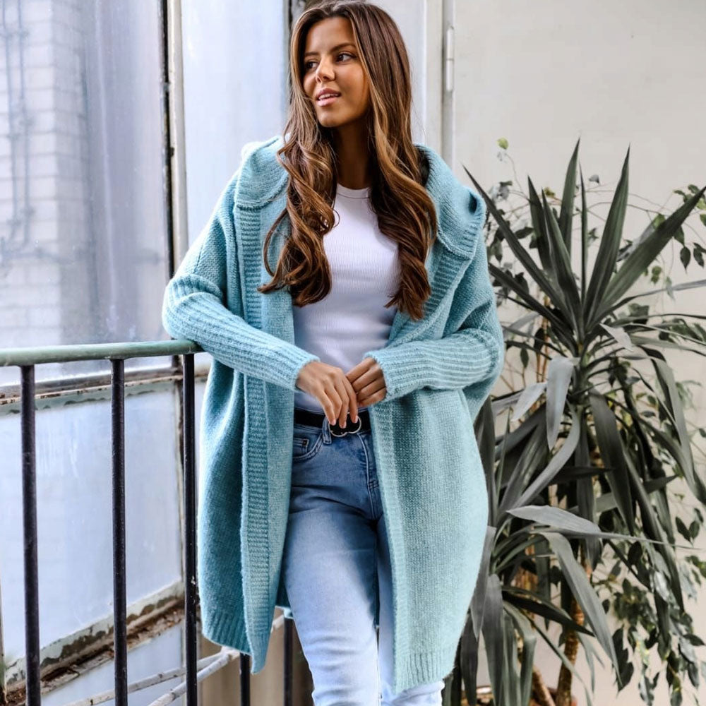 The pre-fall collection proposes a wardrobe to have this knit cardigan! The cardigan envelops the body in a unique cocoon shape from a blend of nylon and acrylic that is set in beautiful colors for your preference. Trimmed with ribbed edges along the placket. cuffs and hem. it is made in an open-front style with a slouchy hoodie and front patch pockets for added casual vibes. The comfortable relaxed fit is amplified by the dolman sleeves with banded cuffs and the back is darted with an exposed vertical stitching. To stay bundled up in style. pair this warm cardigan with skinny trousers and winter boots for a trendy update.