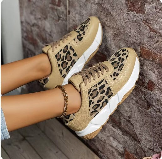 Embrace the perfect fusion of fashion and function with these striking sneakers. Crafted with advanced arch support. they are designed to ease pressure on your feet. minimizing discomfort in your heels and lower back. The bold leopard print infuses a touch of wild sophistication. ensuring these sneakers are a seamless blend of style and comfort.