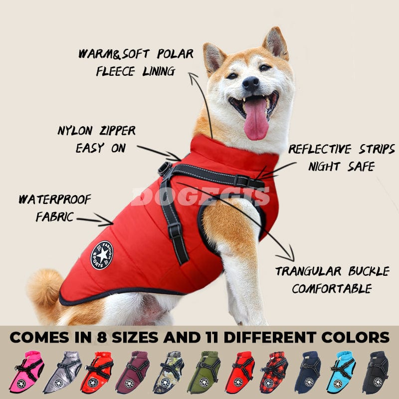 The Dogegis Jackets is the ultimate cold-weather accessory for an active pup. A warm waterproof jacket that doubles up as a reflective harness. Built to keep your pets dry and warm - autumn to spring.