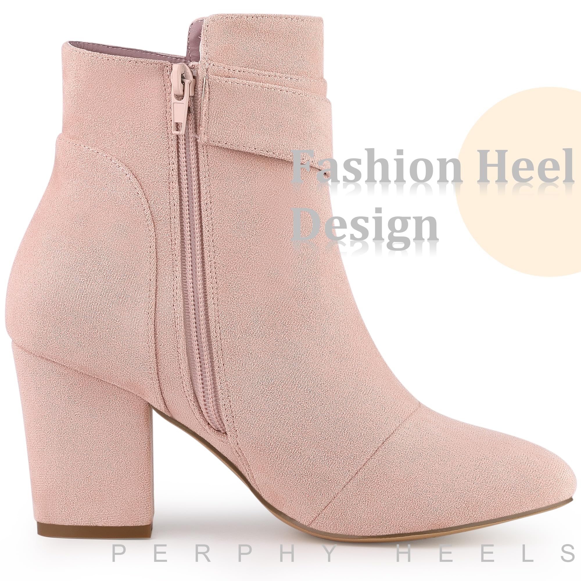 These Dust Pink Chic Suede Round Toe Buckle Heel Ankle Boots provide style and comfort with its chic suede material and buckle heel. These boots will help you stay chic and comfortable.
