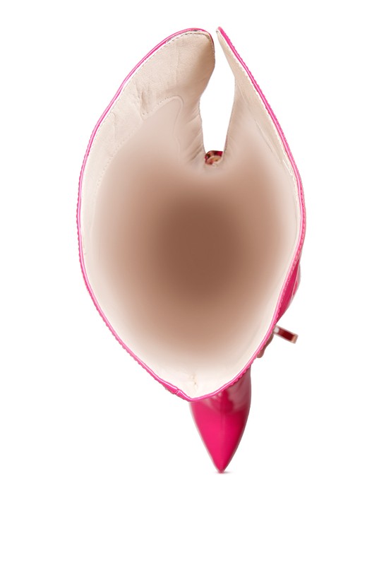 Introducing the Eclectic Patent Leather Stiletto High Heel Boots. Made of top-quality patent leather. these boots offer a unique and stylish addition to your wardrobe. With a stiletto heel and eye-catching design. these boots will make you stand out from the crowd while providing the comfort and support you need.