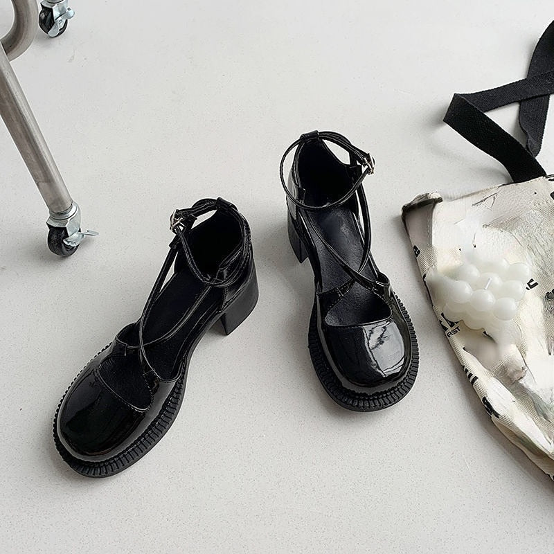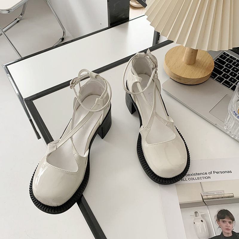 Elegant Medium Heel Shoes Woman Casual Pure Color Sweet Buckle Shoes Mary Janes Summer Basic Korean Style Comfort Sandals