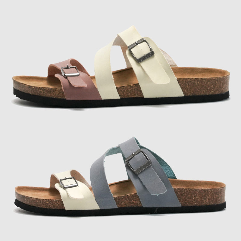Elevate your summer look with the Emie-Daly Havanna Cork Sandals. these sandals feature adjustable straps for a customizable fit. while the sleek leather design adds a touch of elegance to any outfit. Wear them at home or outside with your favorite summer dress.
