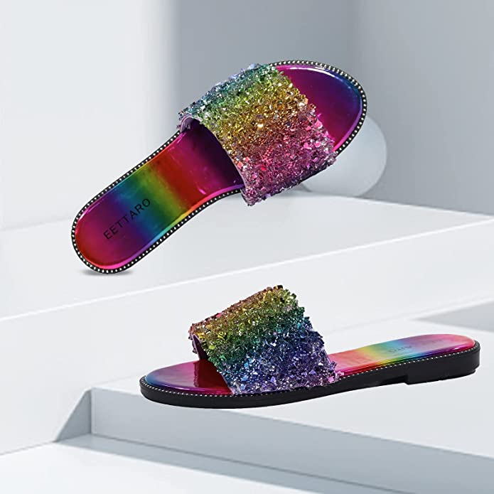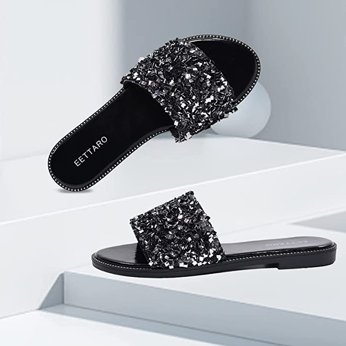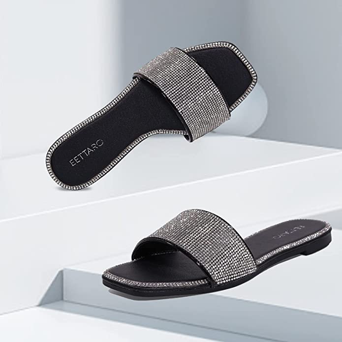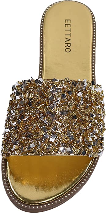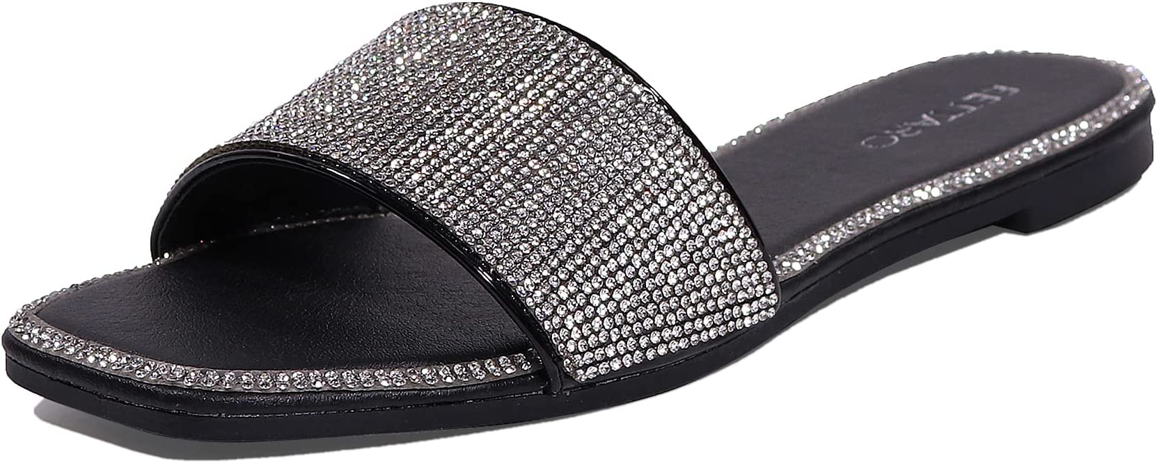 • DESIGN: The cozy slippers adopt ergonomic design. Feature With a chic wide band. a slim footbed and bohemian rhinestone.