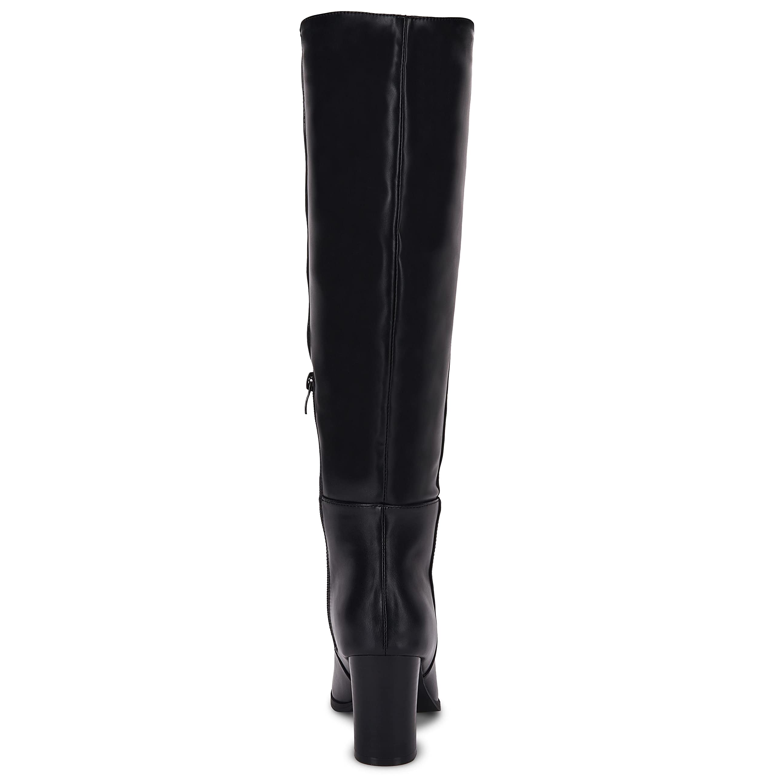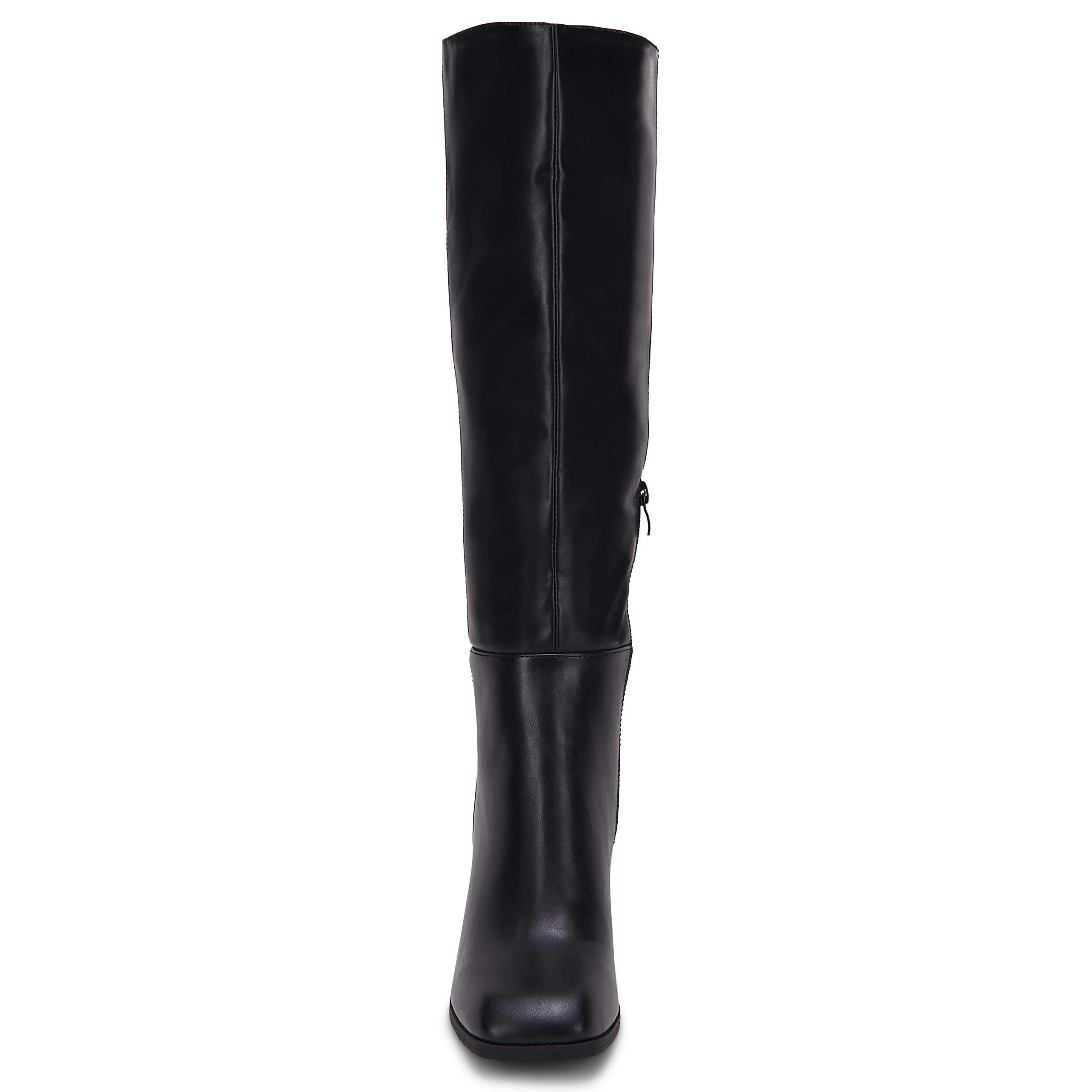 • 👣【Features】Square toe. stacked chunky block heels. knee high boots. side zipper. thigh high fashion boot. wide calf.Sleek and simple. these classic booties are very versatile and very everyday!There are two different materials to choose from. faux leather or faux suede!