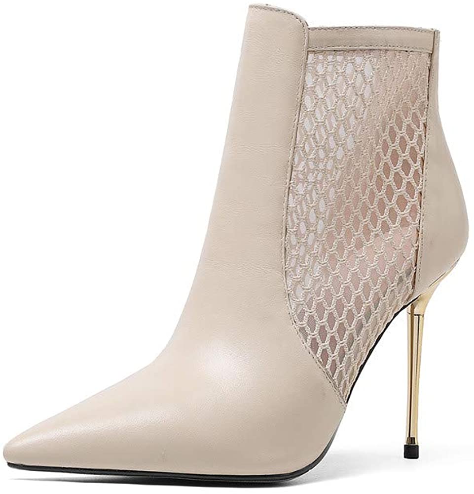 Handmade Leather Mesh Pointed Toe Stiletto Chic Ankle Boots