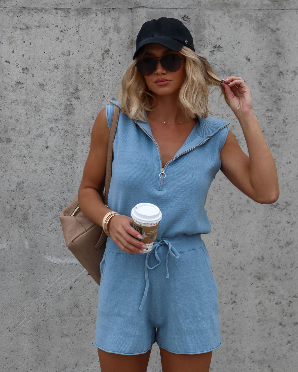 Comfy meets trendy in the Harbor Dates Knit Half Zip Pocketed Romer in blue that features a front zipper closure.