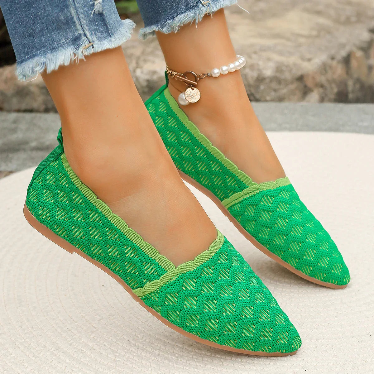 Step into contemporary elegance and comfort with the Ivanie Knitted Flat Shoes. your ultimate choice for chic. breathable. and adaptable footwear.