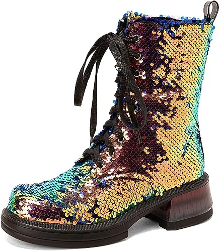 Stay fashionable and on-trend in these Lace Up Glitter Sequin Combat Boots. Featuring eye-catching sequin and glitter details. these boots will let you make a statement without compromising comfort. Lace-up design ensures you can find the perfect fit. Make a statement in style!