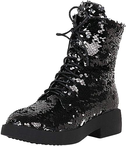 Stay fashionable and on-trend in these Lace Up Glitter Sequin Combat Boots. Featuring eye-catching sequin and glitter details. these boots will let you make a statement without compromising comfort. Lace-up design ensures you can find the perfect fit. Make a statement in style!