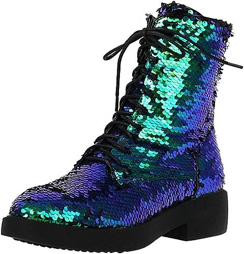 Stay fashionable and on-trend in these Lace Up Glitter Sequin Combat Boots. Featuring eye-catching sequin and glitter details. these boots will let you make a statement without compromising comfort. Lace-up design ensures you can find the perfect fit. Make a statement in style!