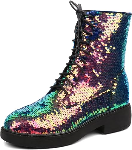 Stay fashionable and on-trend in these Lace Up Glitter Sequin Combat Boots. Featuring eye-catching sequin and glitter details. these boots will let you make a statement without compromising comfort. Lace-up design ensures you can find the perfect fit. Make a statement in style!